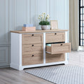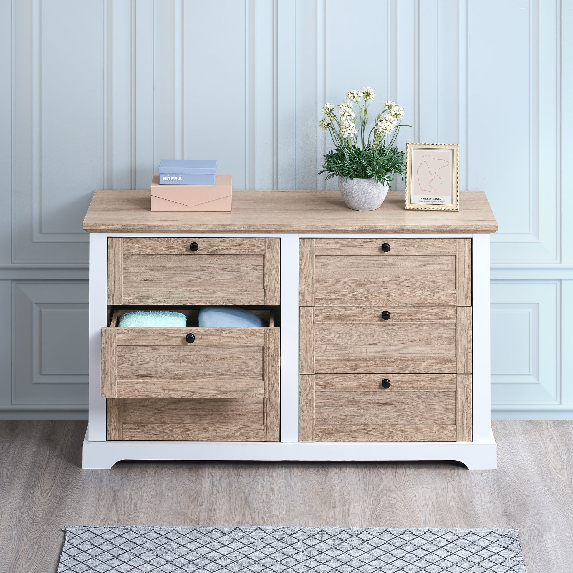 Autumn Modern 6 Drawer Master Dresser With Interlock Drawer Feature Drawer Slide And Interlock Pre Assembly, Wide Dressers For Bedroom 6 Deep Drawers For Closet Organizer Easy Assembly, White Oak Oak Natural Wood Off White White Bedroom American