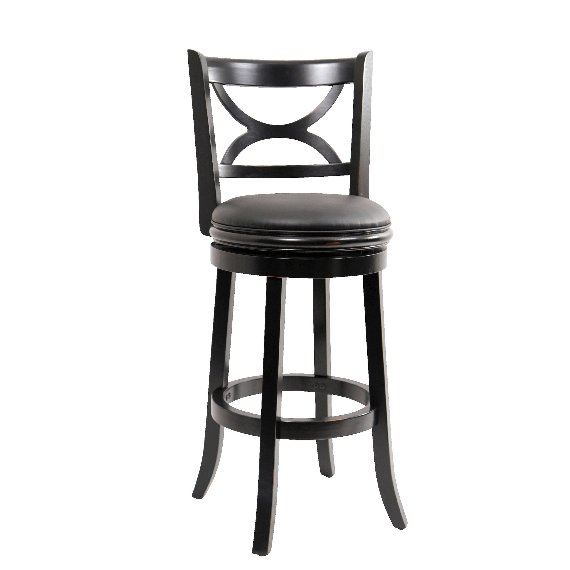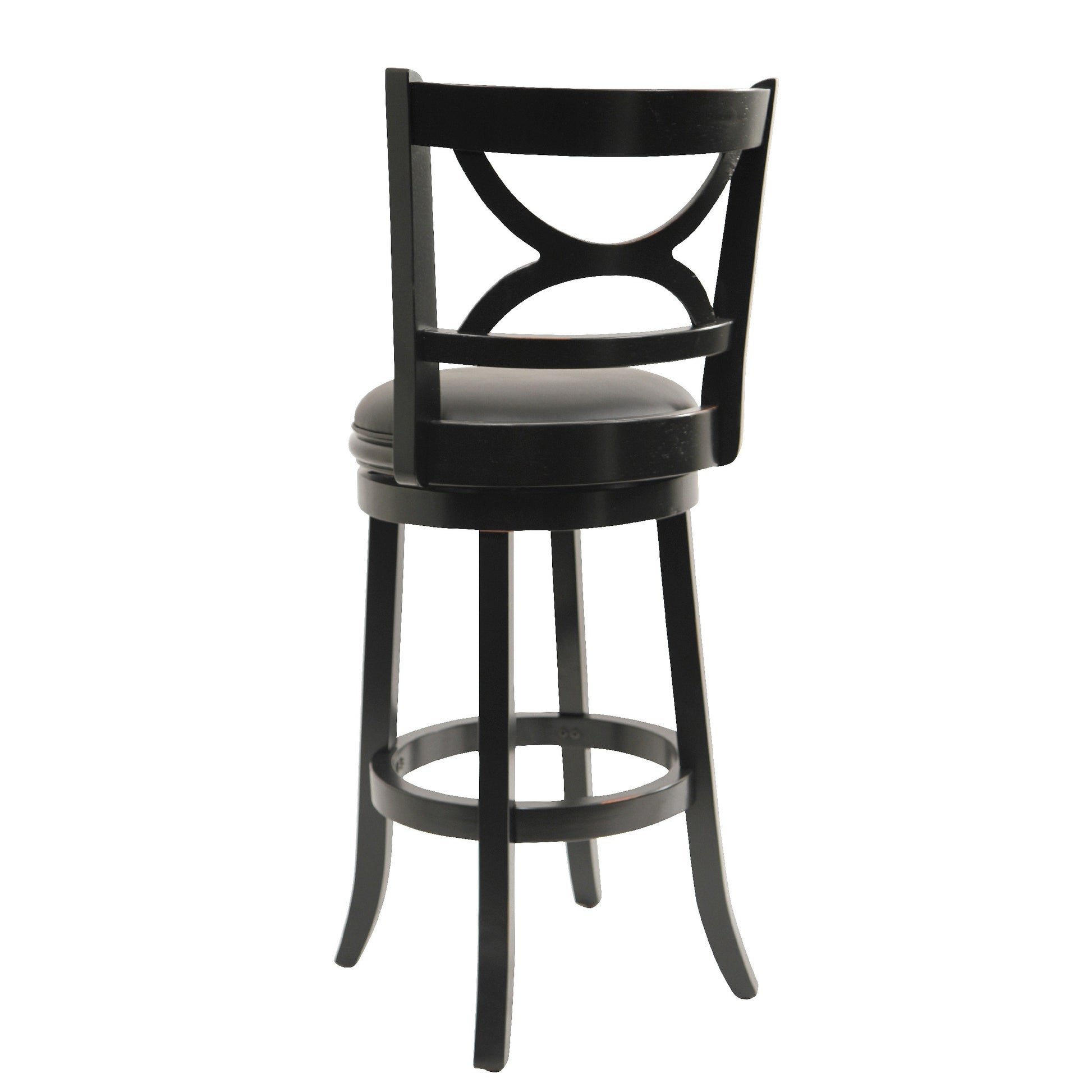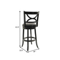 Ava 29 Inch Swivel Bar Stool, Solid Wood, Rich Faux Leather, Midnight Black Black Grey Solid Wood