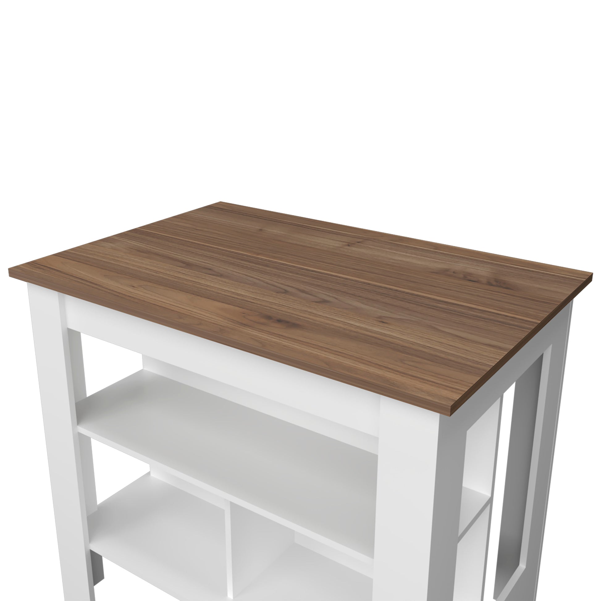 Aztec Kitchen Island In Melamine With Open Storage, Mahogany White Multi Kitchen Minimalist,Modern Rectangular Stationary Kitchen Islands Pine Particle Board Melamine Medium 40 55In