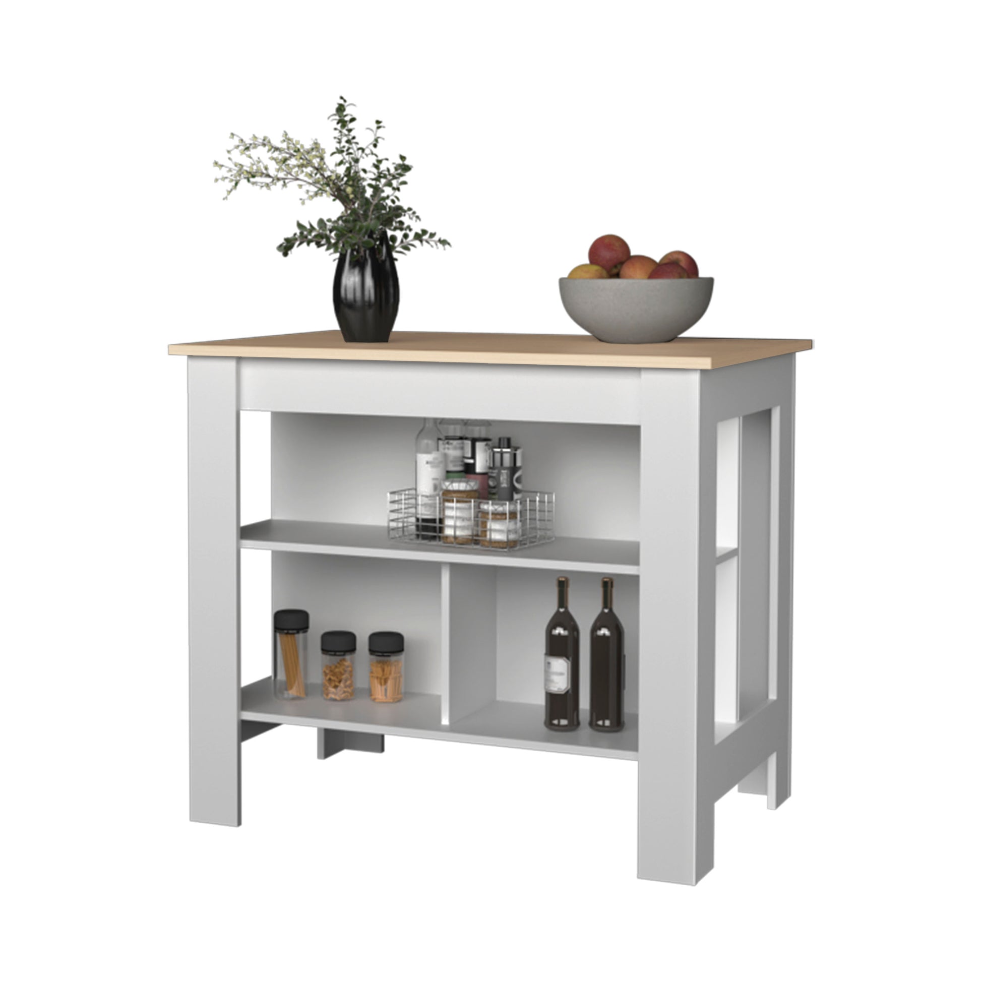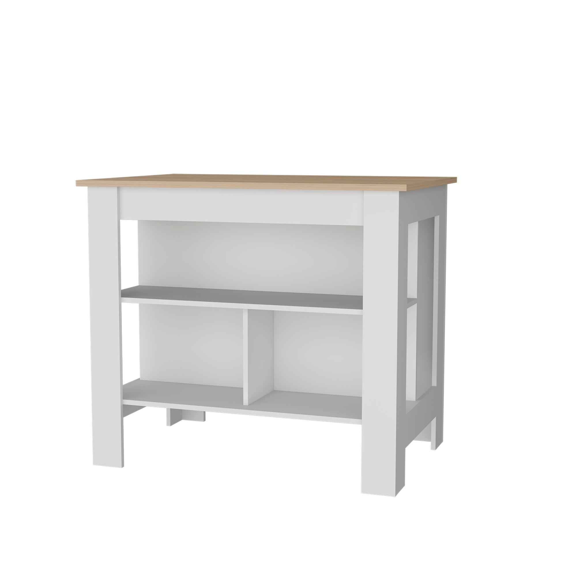 Aztec Kitchen Island In Melamine With Open Storage, Light Pine White Multi Kitchen Modern Rectangular Stationary Kitchen Islands Particle Board Melamine Medium 40 55In