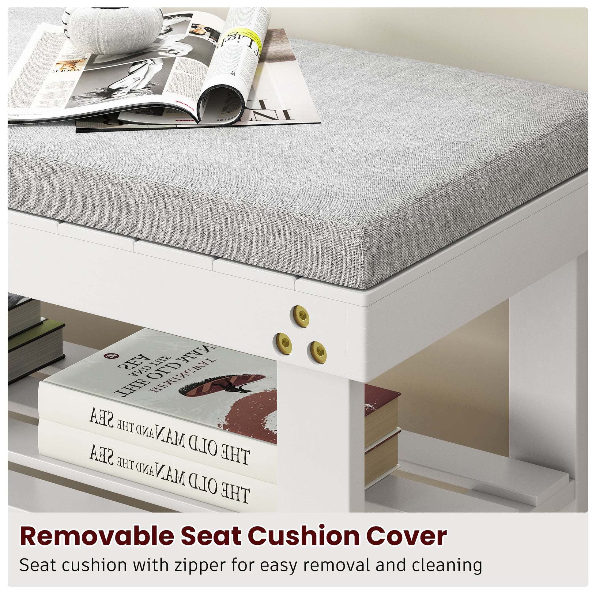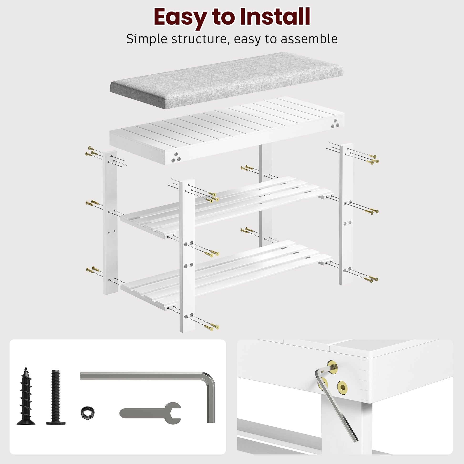Bamboo Shoe Bench, 3 Tier Shoe Rack, Entryway Bench With Cushion And Adjustable Shelves, Shoe Rack For Entryway, Hallway, Mudroom And Living Room, White White Bamboo