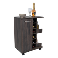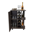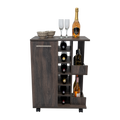 Bar Cart, Two External Shelves, Four Casters, Six Built In Wine Rack, Single Door Cabinet Espresso Brown Primary Living Space Particle Board Particle Board