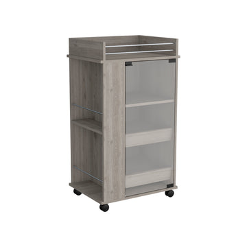 Bar Cart With Glass Door, 2 Side Shelves And Casters, Light Gray Gray Pine Particle Board Engineered Wood