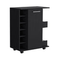 Bar Cart With Six Wine Cubbies Cabot, Two Side Storage Shelves And Casters, Black Wengue Finish Black Particle Board