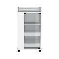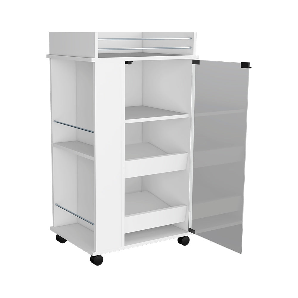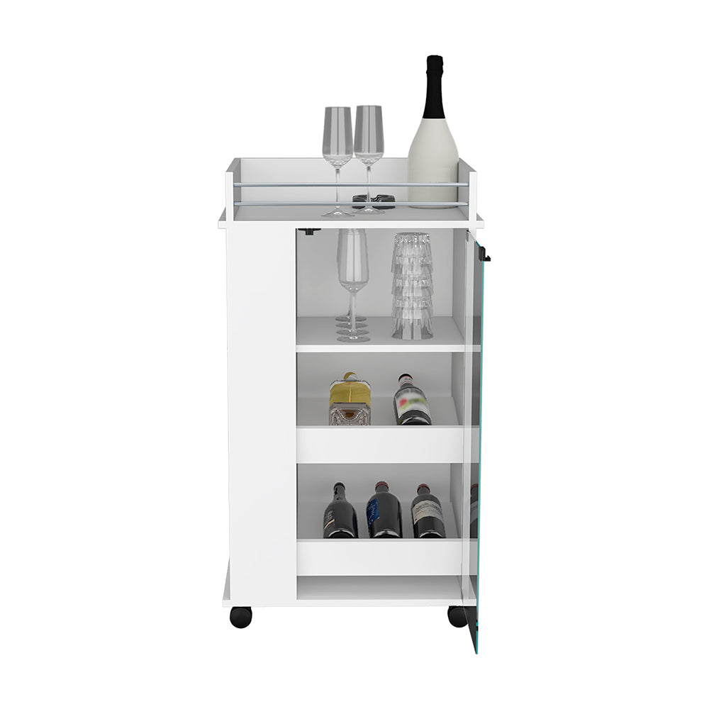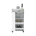 Bar Cart With Two Side Shelves Beaver, Glass Door And Upper Surface, White Finish White Particle Board