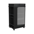 Bar Cart With Two Side Shelves Beaver, Glass Door And Upper Surface, Black Wengue Finish Black Particle Board