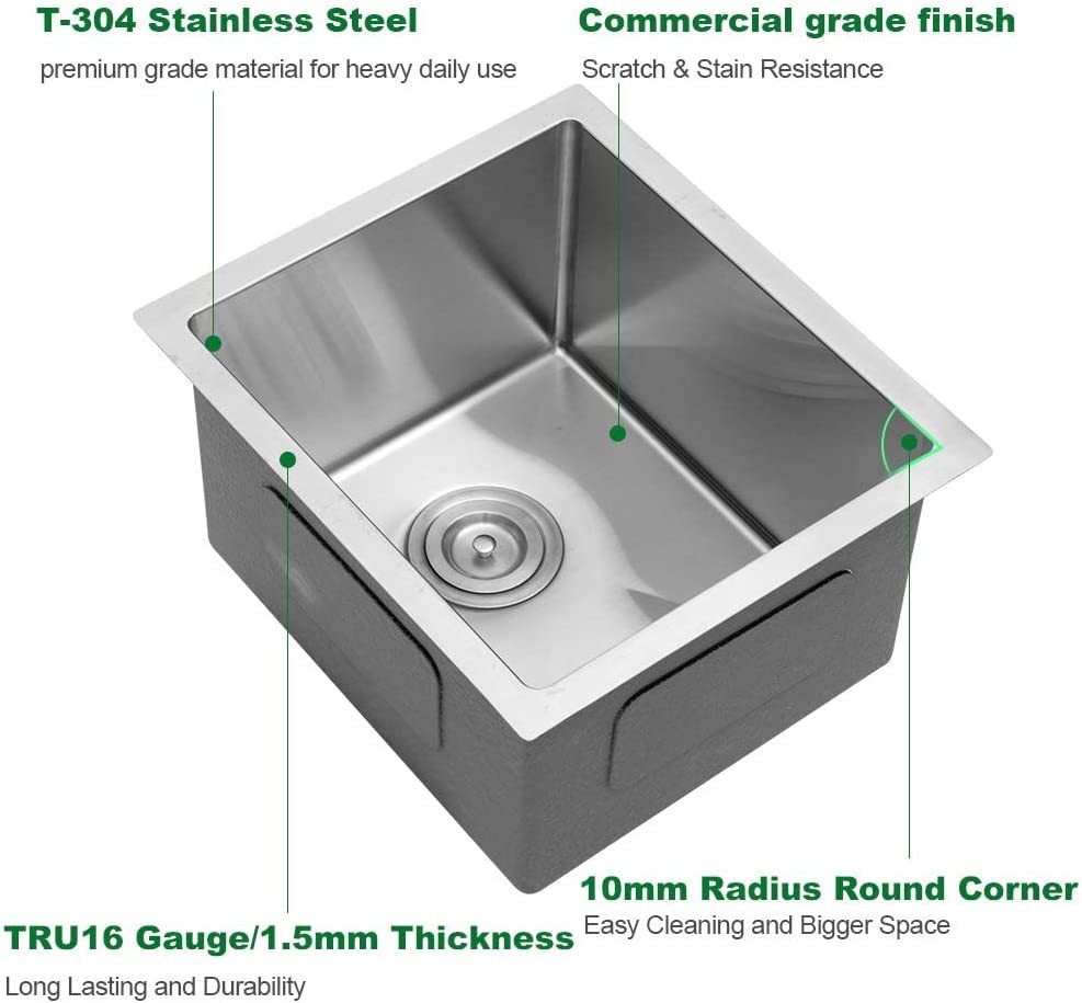 Bar Sink Undermount Sarlai 14"X18" Undermount Single Bowl Stainless Steel Bar Prep Sink Small Kitchen Sink Brushed Nickel Stainless Steel