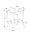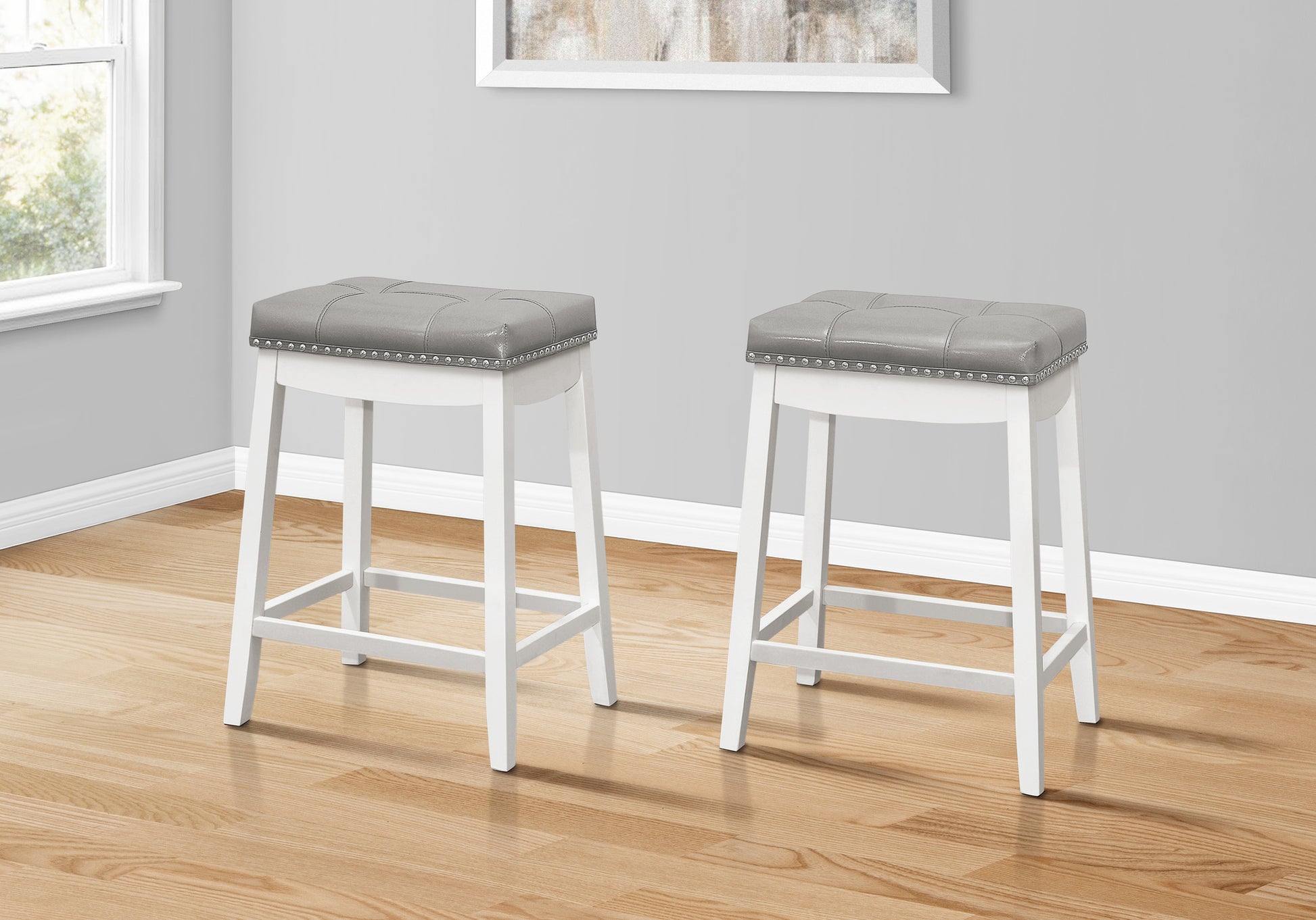 Bar Stool, Set Of 2, Counter Height, Saddle Seat, Kitchen, White Wood, Grey Leather Look, Transitional White Foam Solid Wood