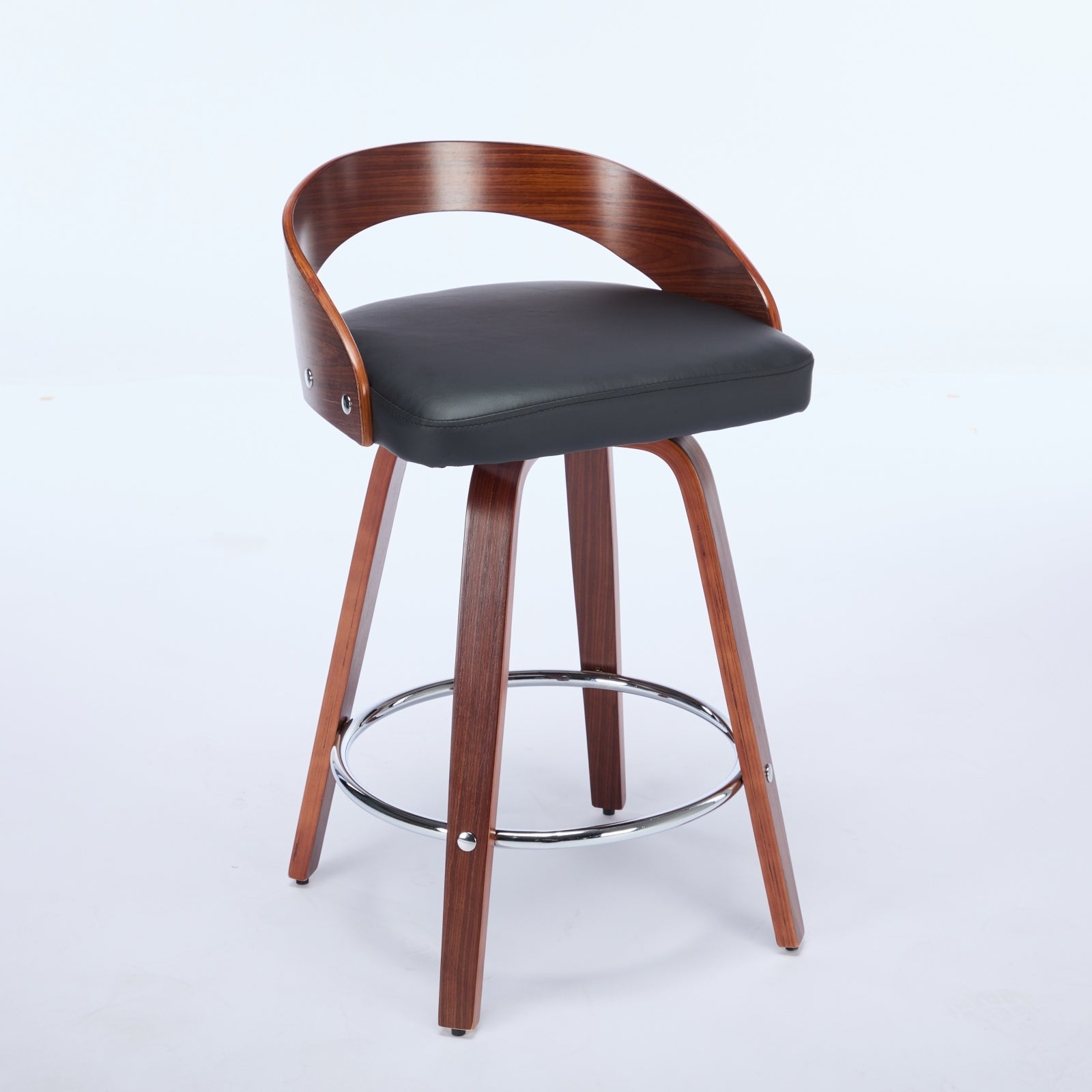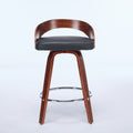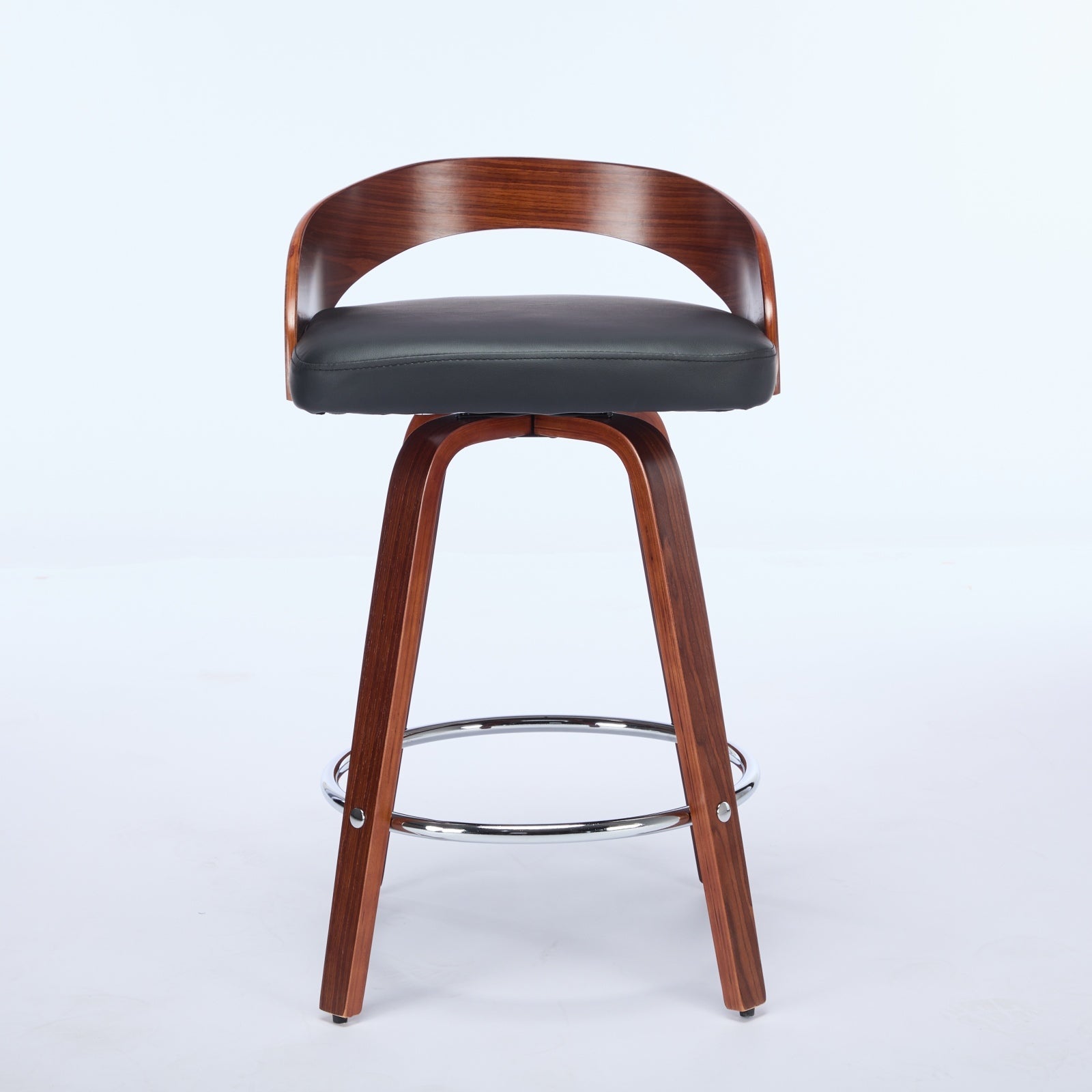 Bar Stools Set Of 2, Swivel Bar Height Stools With Low Back, Wood Bar Chairs With Soft Cushion Seat, 25 Inch Seat Height Black, 25" Counter Height Black Pu American Design,Mid Century Modern Set Of 2 Foam Pu Leather