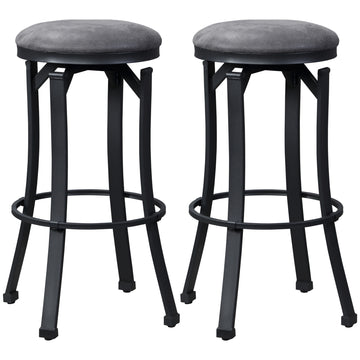 Bar Stools Set Of 2, Vintage Barstools With Footrest And Microfiber Cloth, 29 Inch Bar Height Stool With Powder Coated Steel Legs For Kitchen And Dining Room, Dark Grey Gray Microfiber
