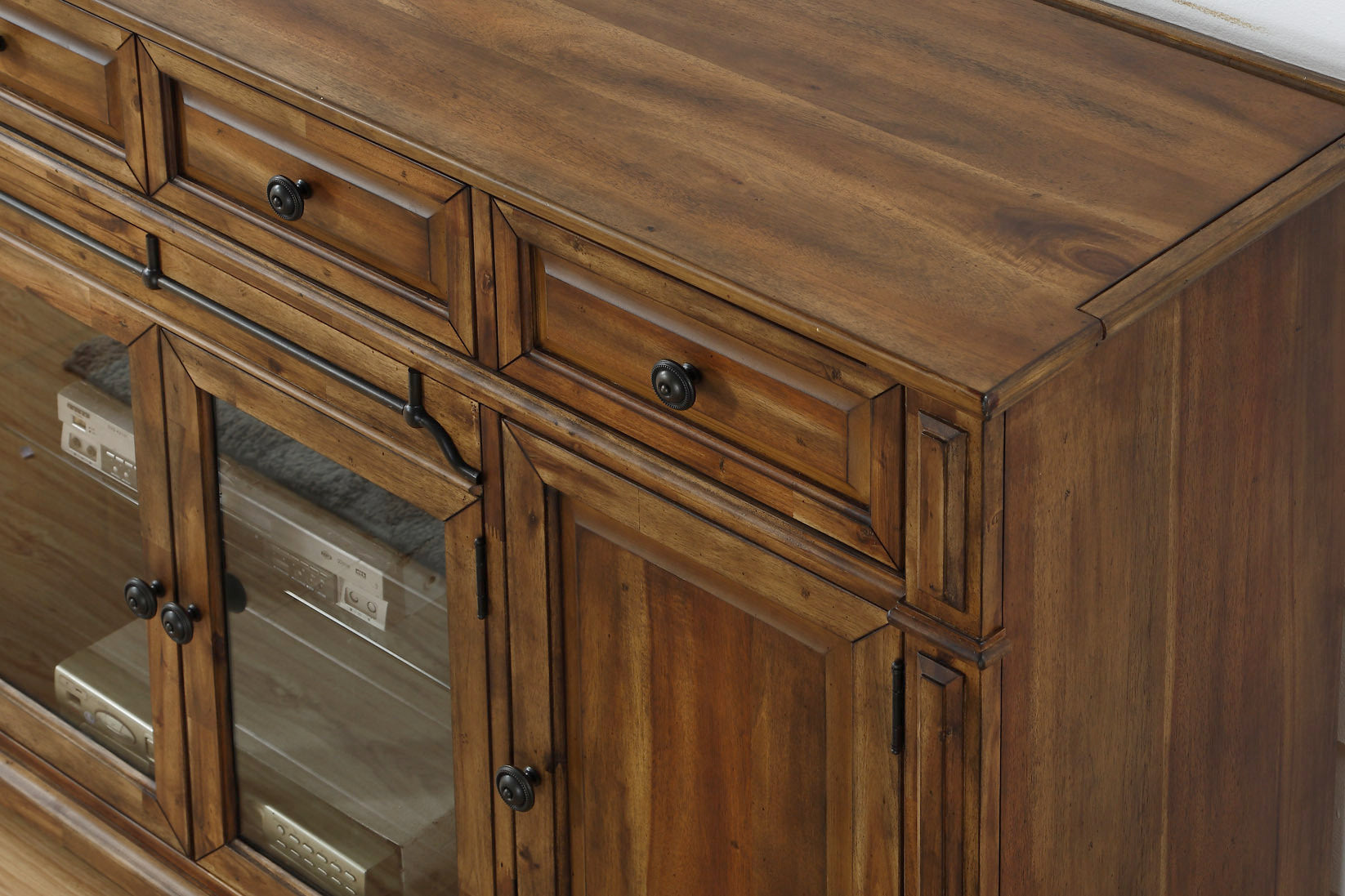 Barclay 72 Inch Tv Stand Console, No Assembly Required, Rustic Acacia Finish Brown Brown Primary Living Space 70 79 Inches 80 89 Inches Lodge,Rustic,Traditional Acacia 85 Inches Acacia Wood