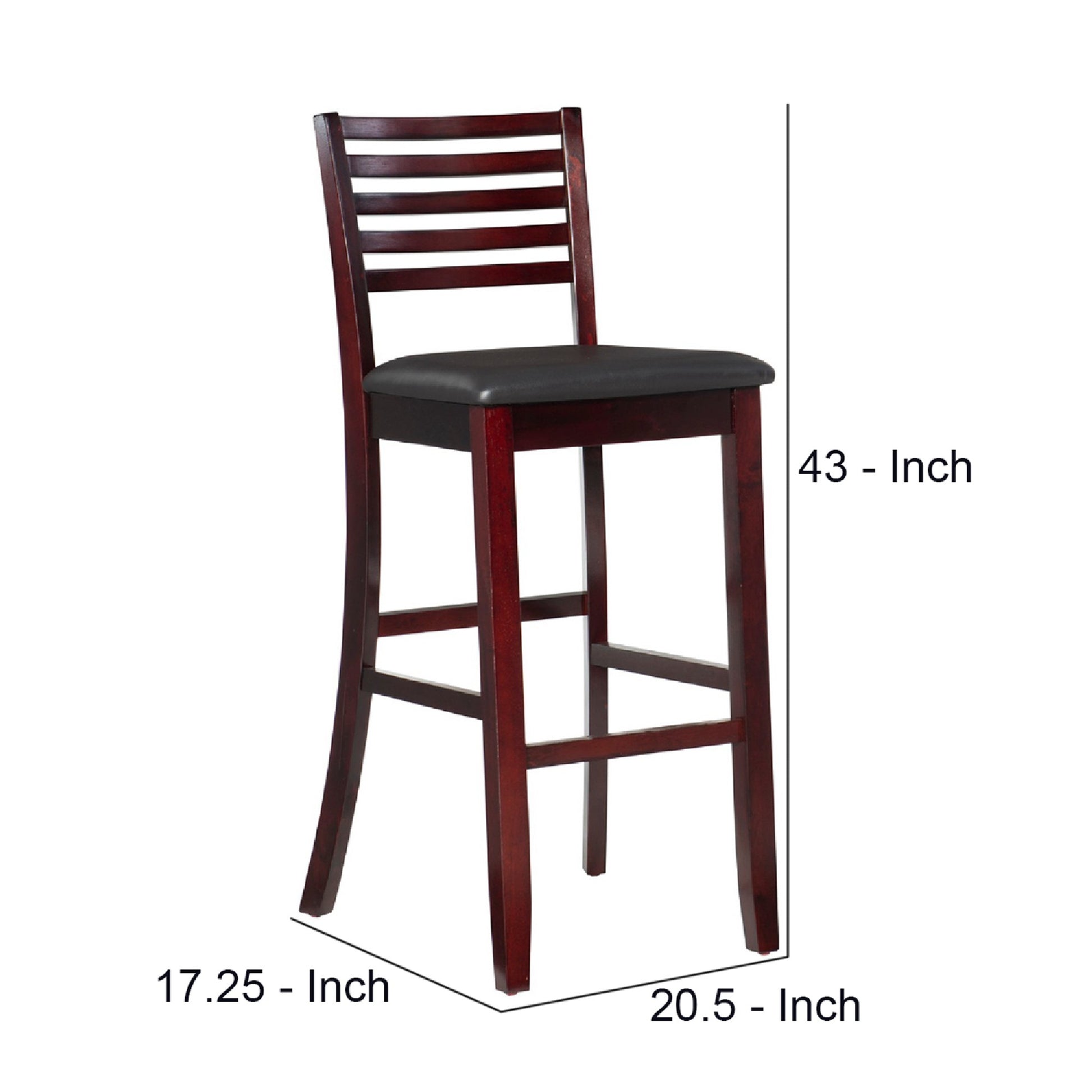 Barstool Withseat And Ladder Back, Espresso Brown Brown Wood Fabric