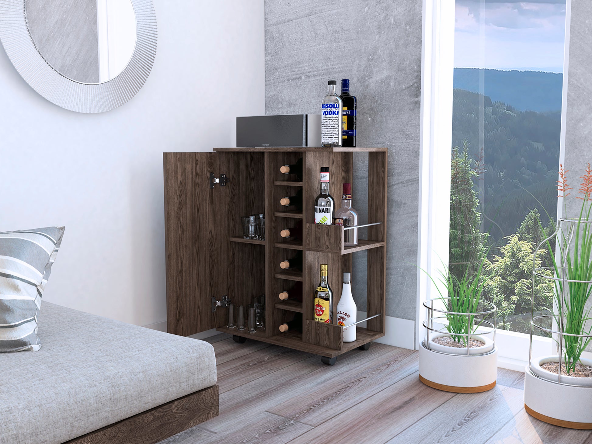 Bartlet 2 Shelf 6 Bottle Bar Cart With Division Dark Walnut Brown Particle Board