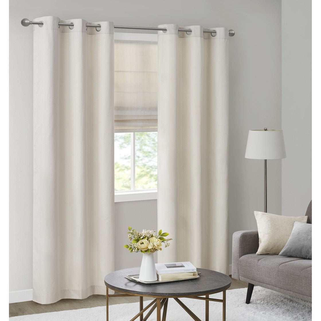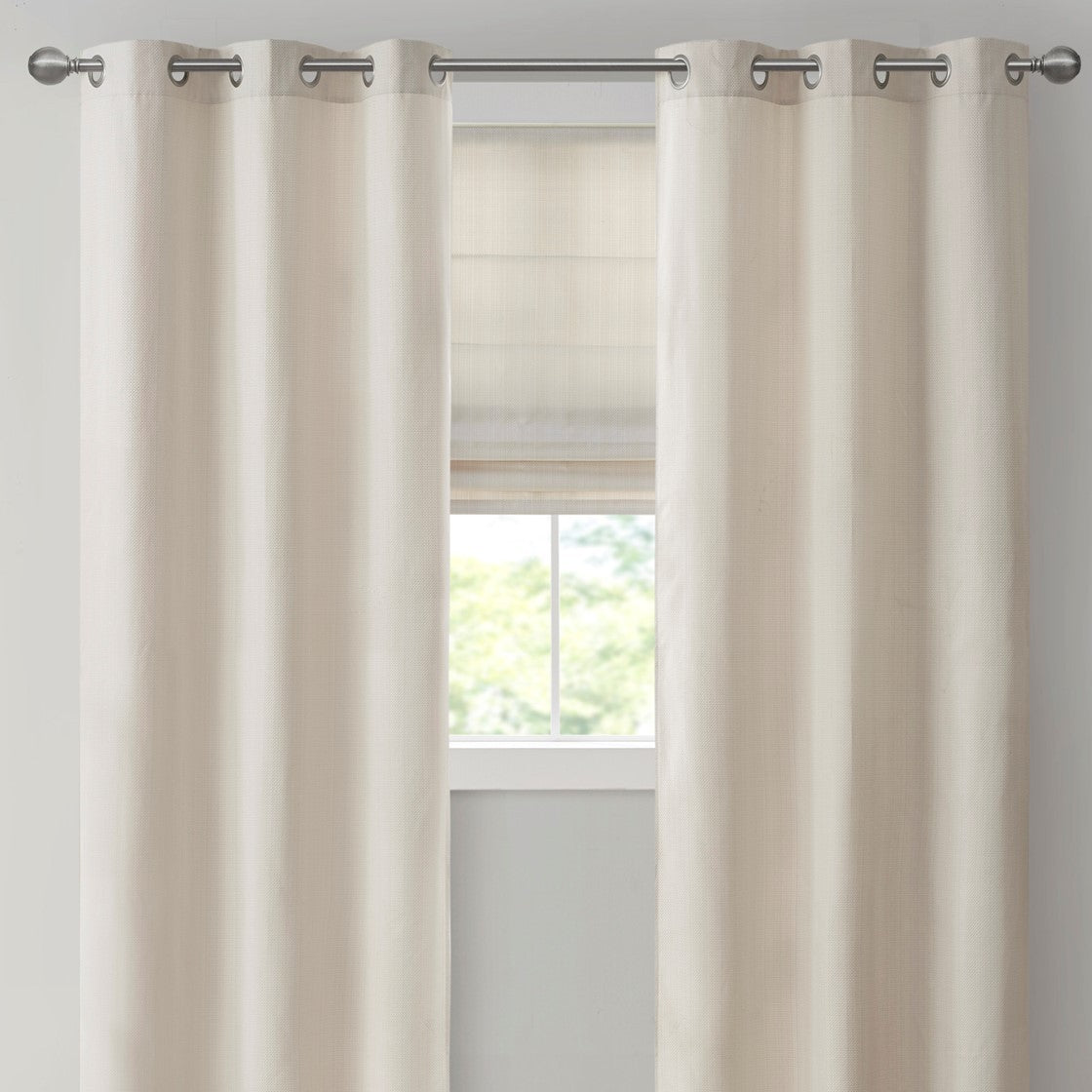 Basketweave Room Darkening Cordless Roman Shade Ivory Polyester