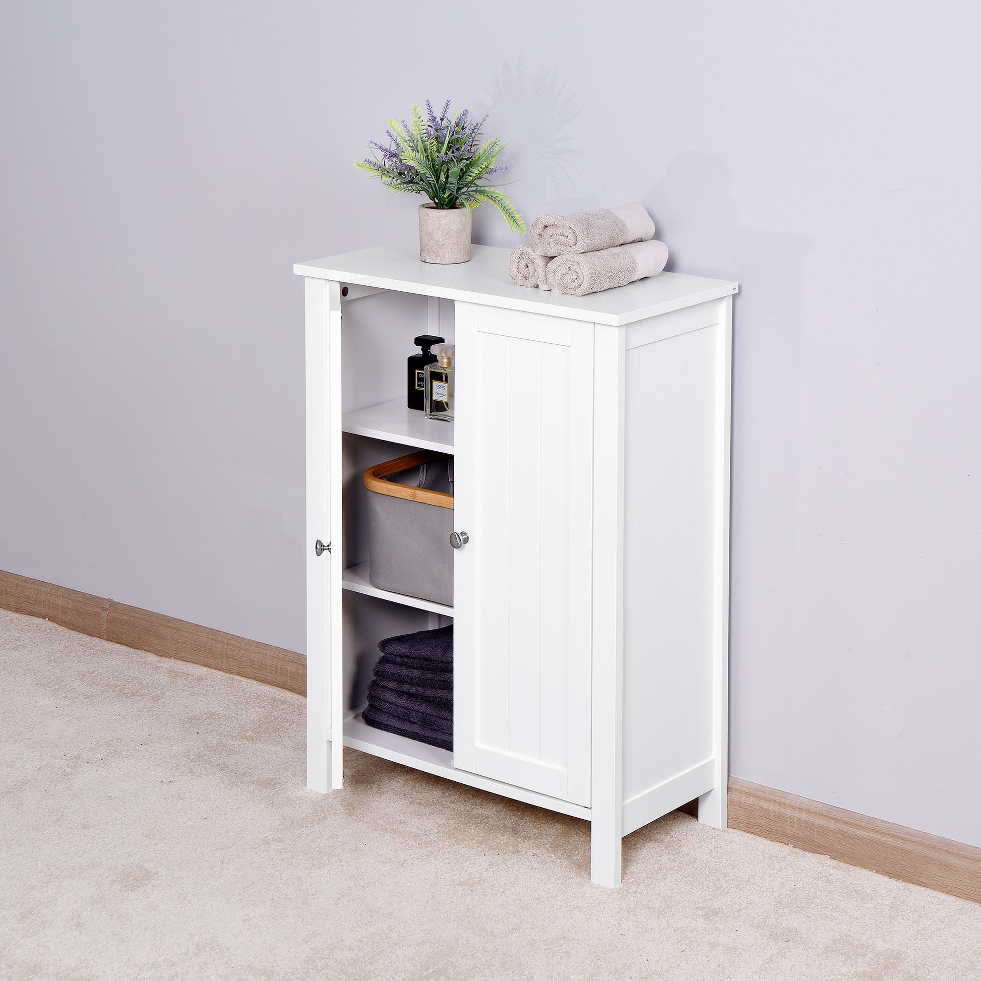 Bathroom Floor Storage Cabinet With Double Door Adjustable Shelf, White White Mdf