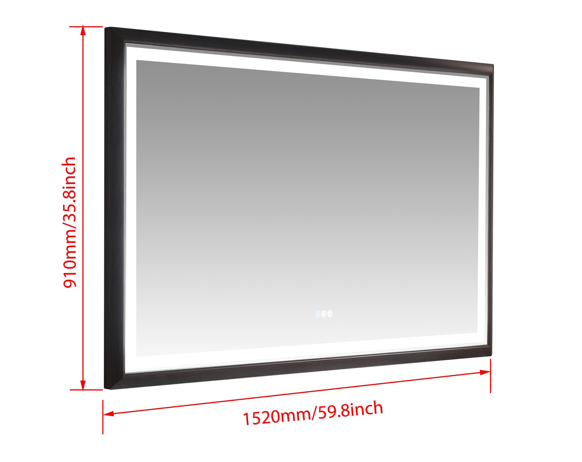 Bathroom Led Mirror Is Multi Functional And Each Function Is Controlled By A Smart Touch Button. Brown Aluminium