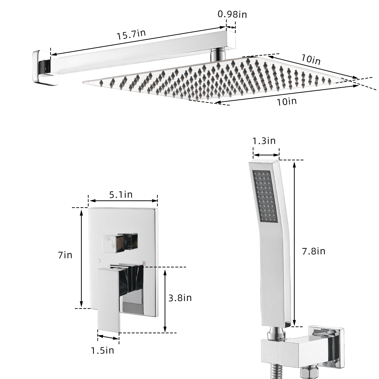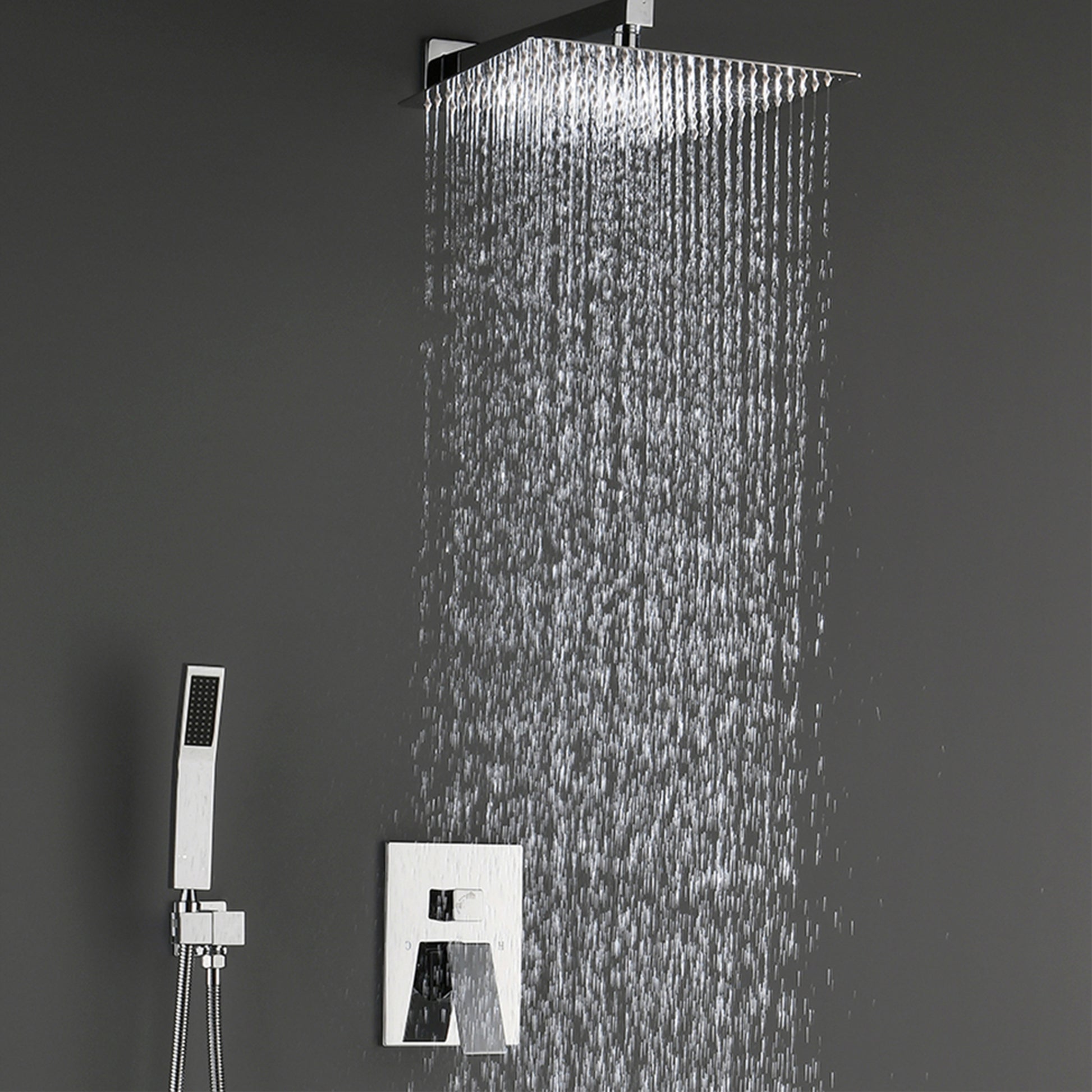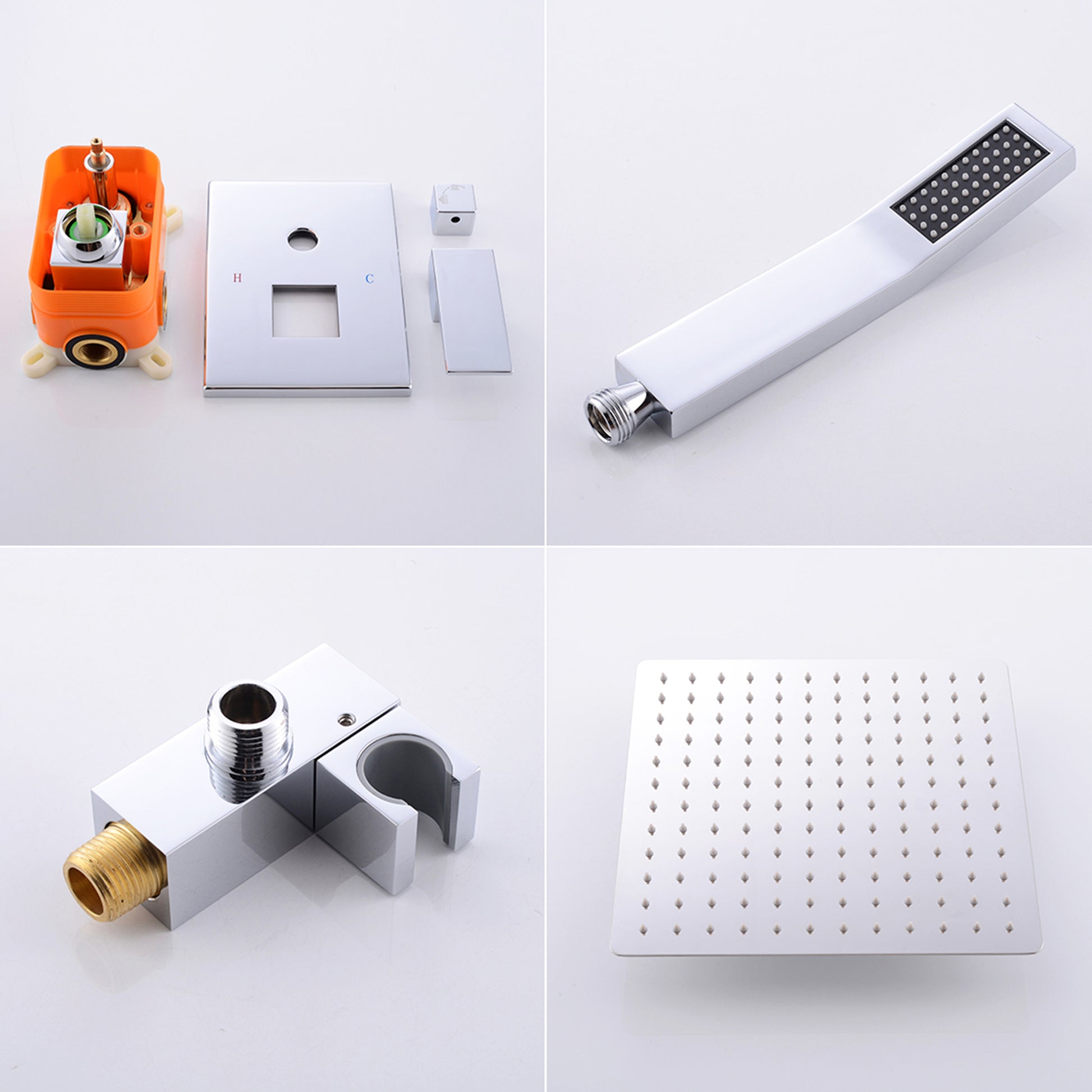 Bathroom Luxury Rain Mixer Combo Set Wall Mounted Rainfall Shower Head System Polished Chrome, Contain Faucet Rough In Valve Body And Trim Bathroom Joystick Claw Foot Tub Faucets One Chrome Pull Out Wall Mounted Cartridge Valve Wall Mounted Faucets