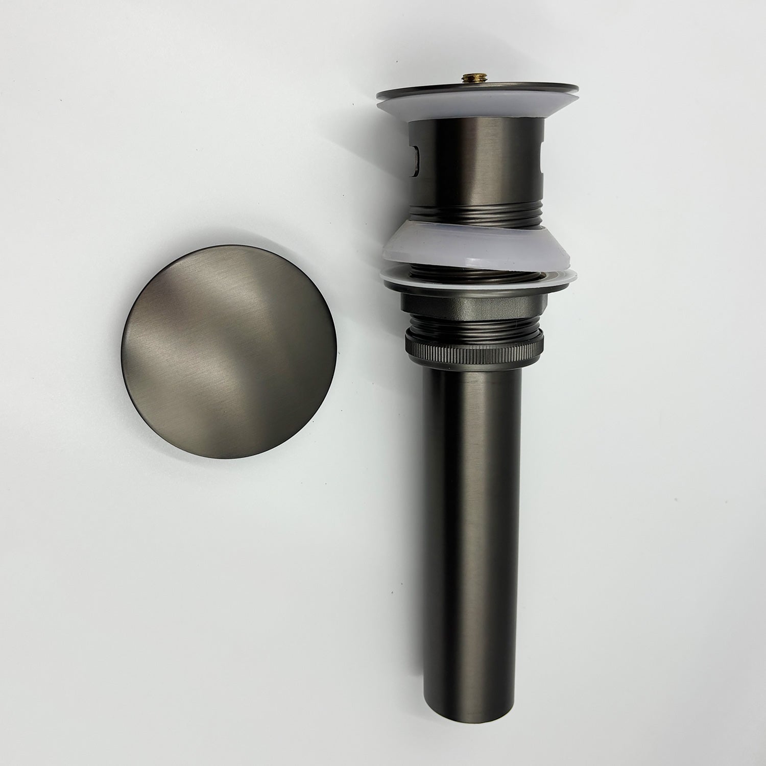 Bathroom Sink Drain With Overflow, Vessel Sink Lavatory Vanity Pop Up Drain Stopper, 304 Stainless Steel Gunmetal Stainless Steel