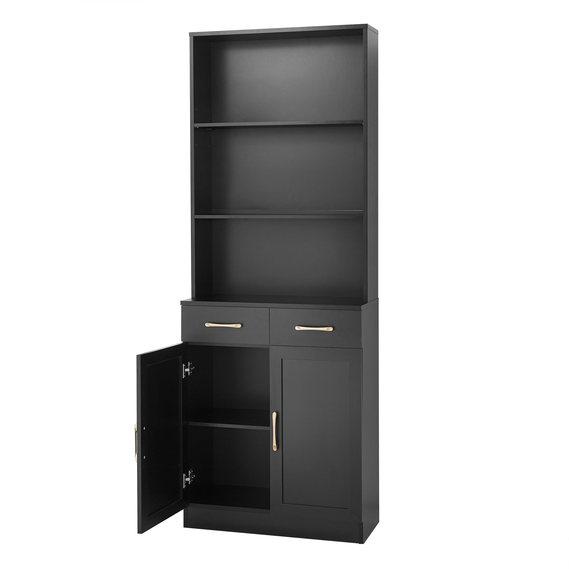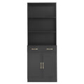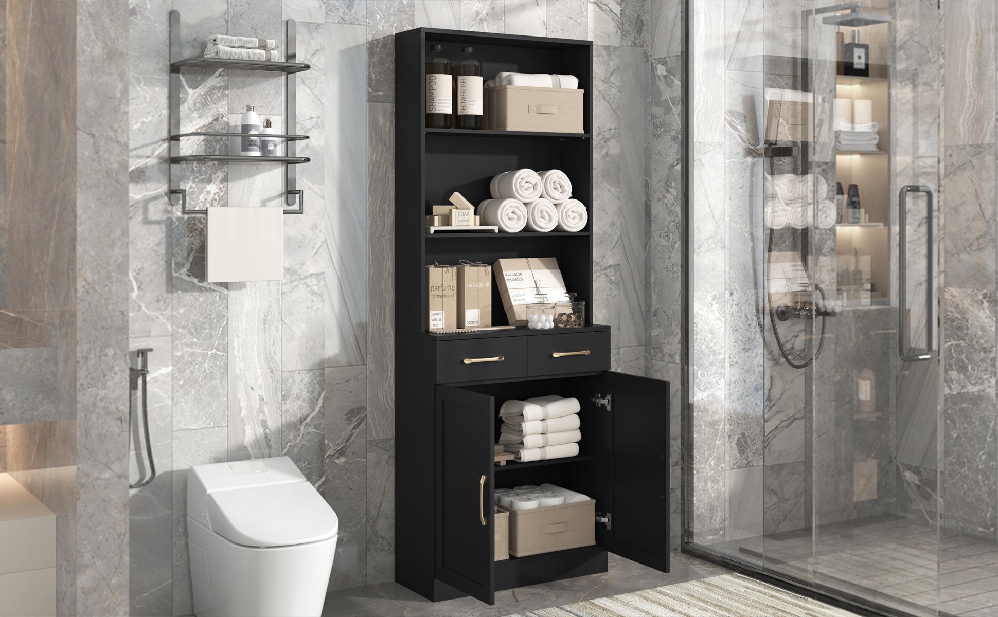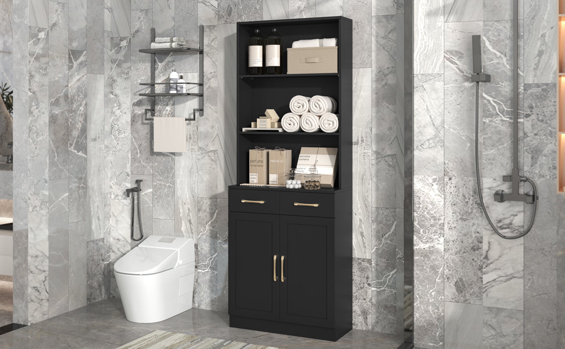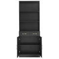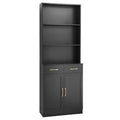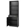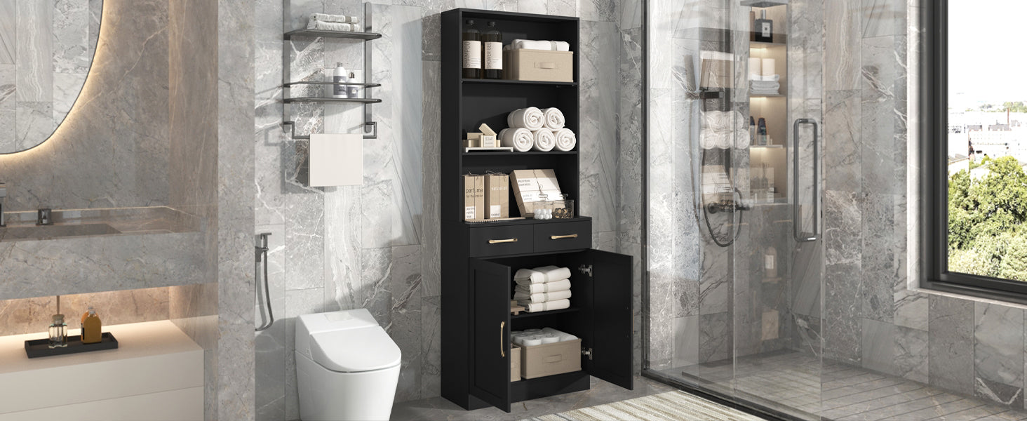 Bathroom Storage Cabinet, Cabinet With Two Doors And Drawers, Adjustable Shelf, Three Layer Open Shelf, Mdf Board, Black Black Mdf