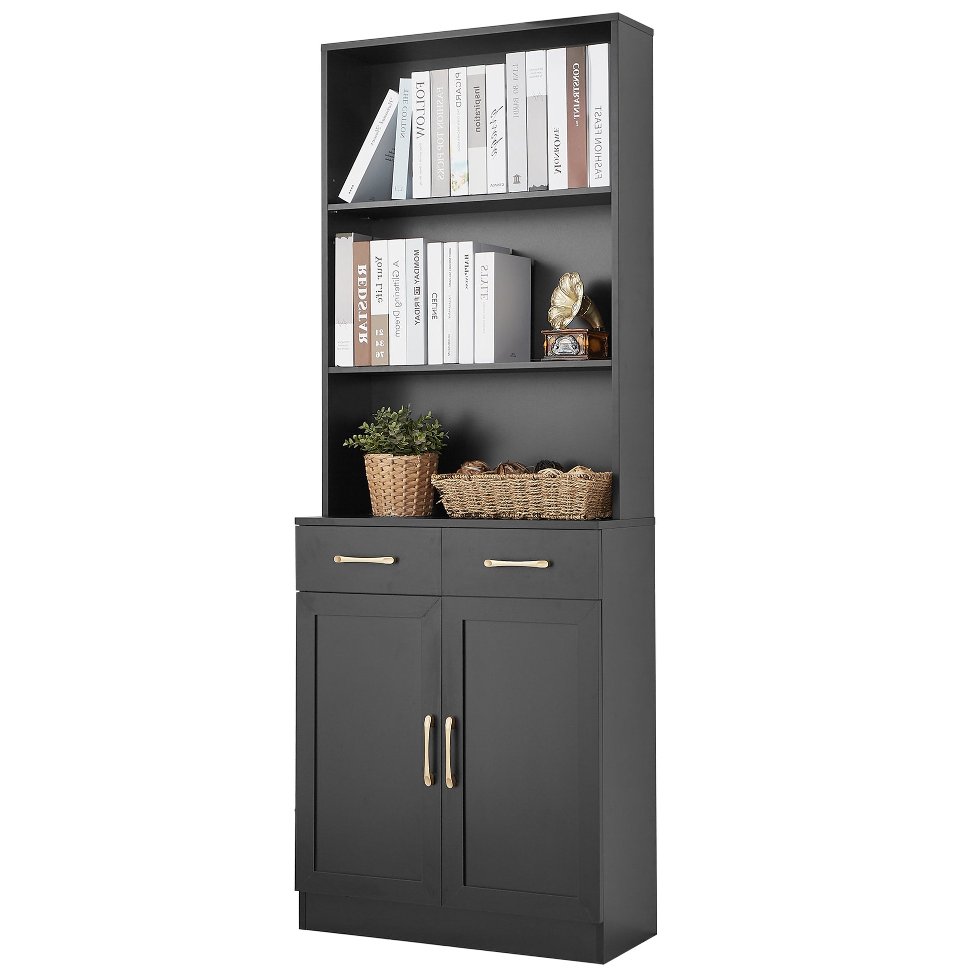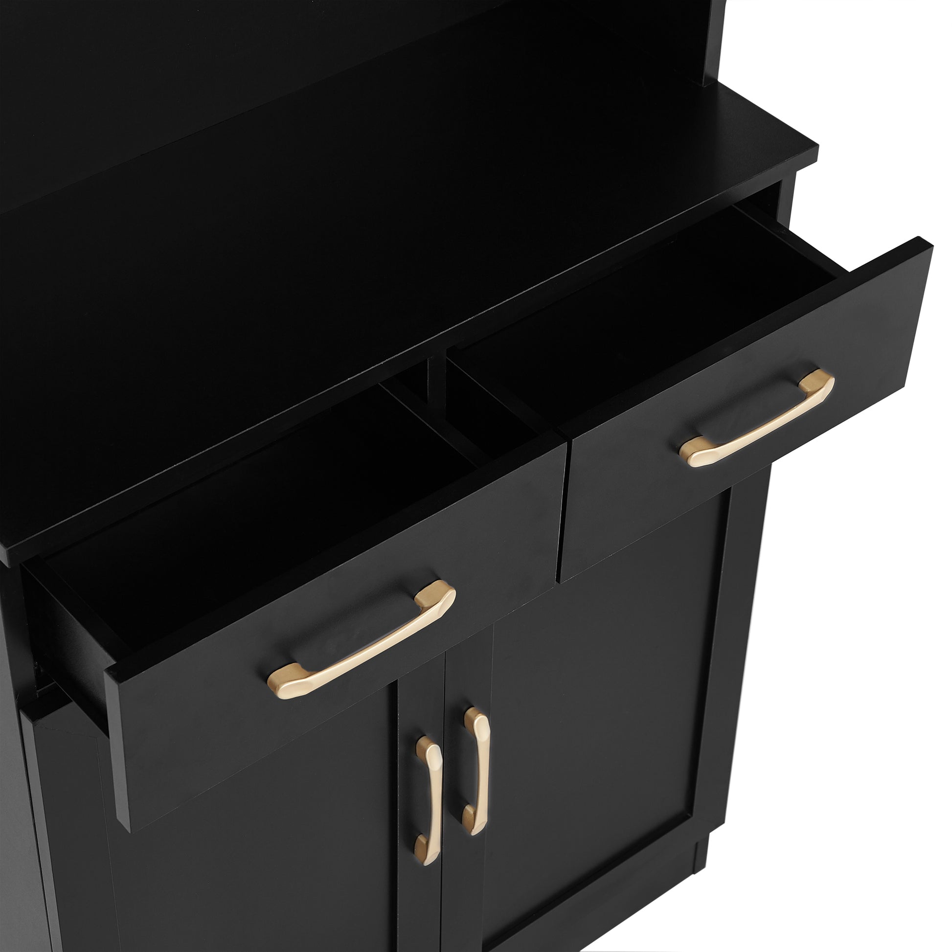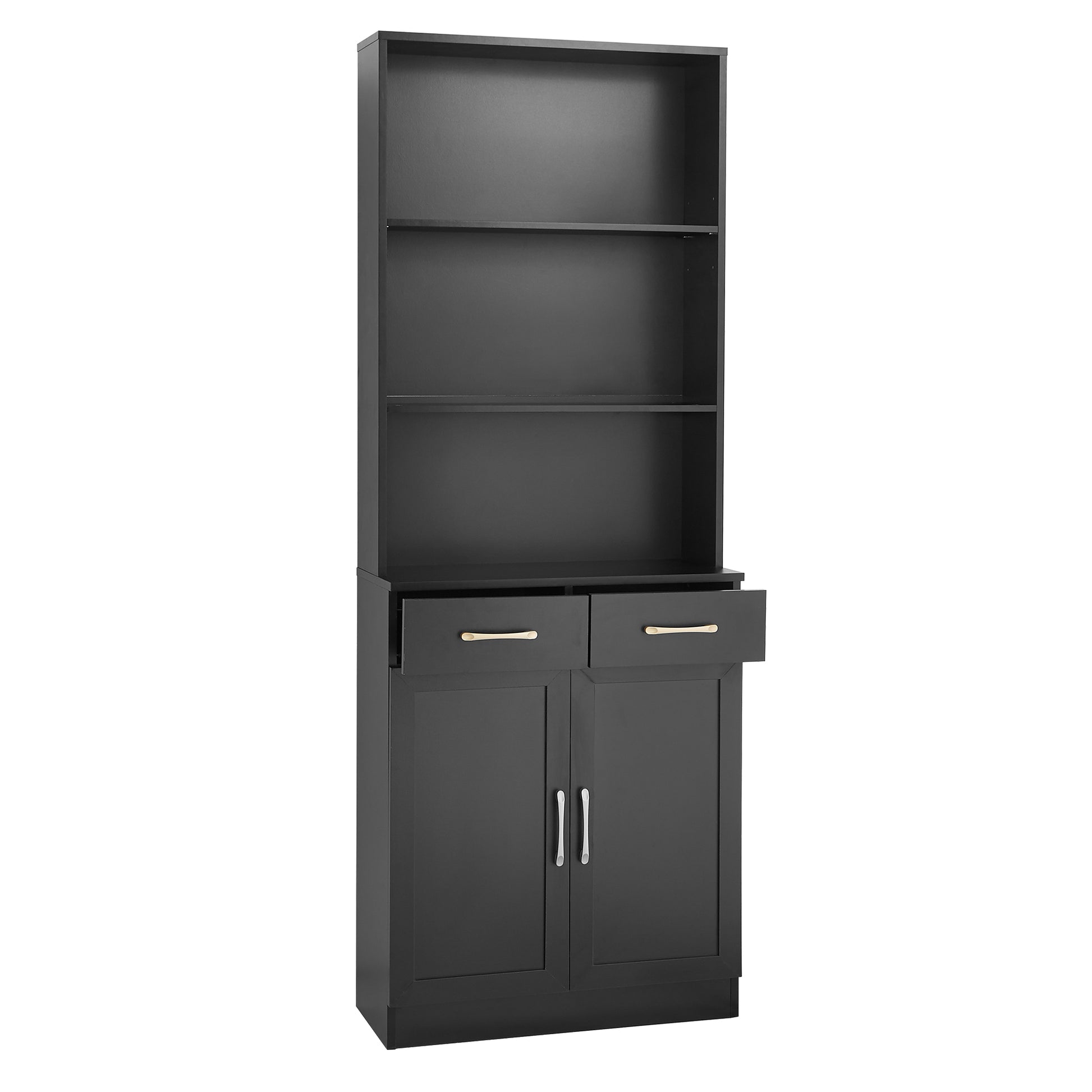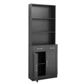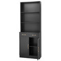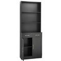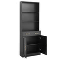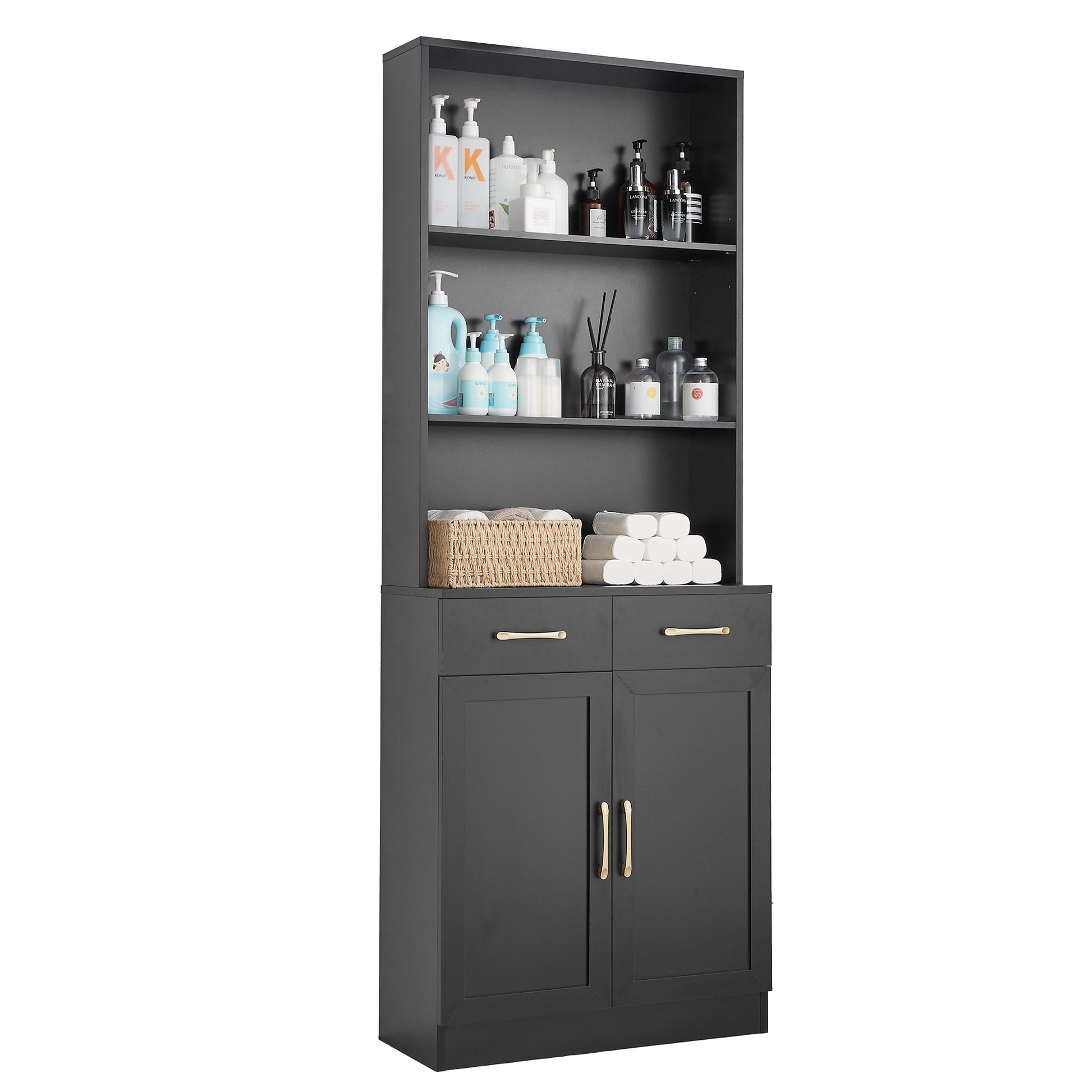 Bathroom Storage Cabinet, Cabinet With Two Doors And Drawers, Adjustable Shelf, Three Layer Open Shelf, Mdf Board, Black Black Mdf
