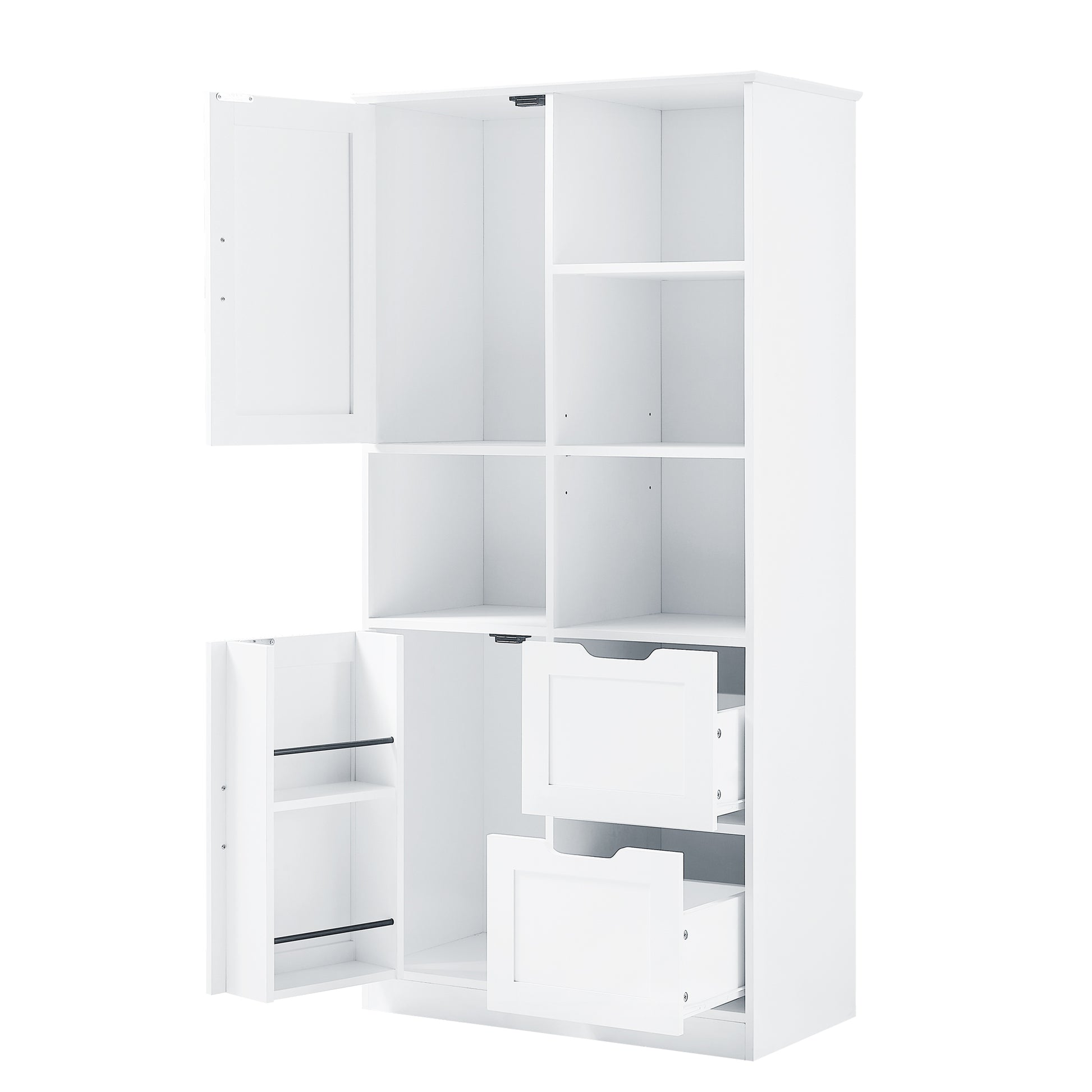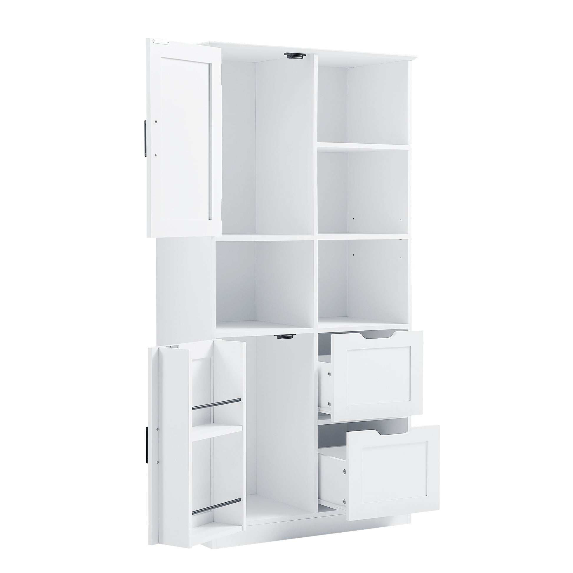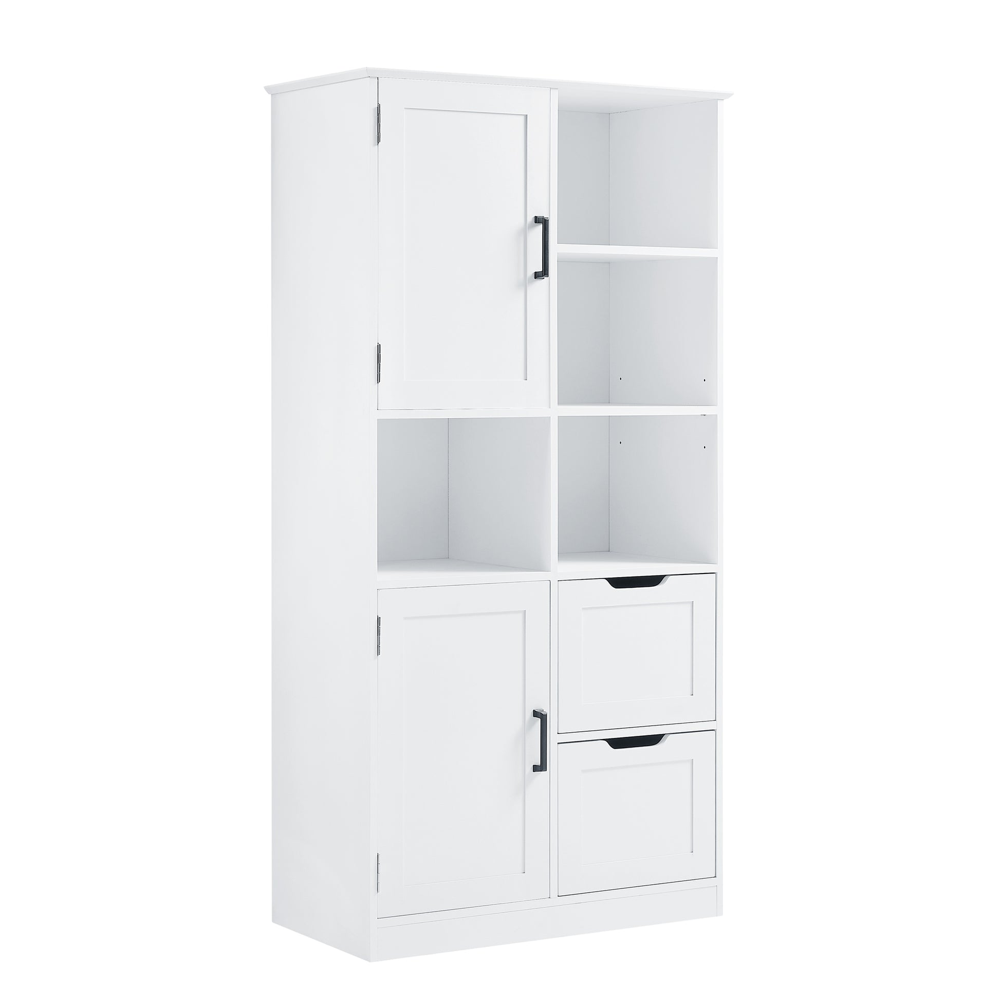 Bathroom Storage Cabinet With Doors And Drawers, Multiple Storage Space, Freestanding Style, Open Shelve, Adjustable Shelf, White White Mdf