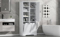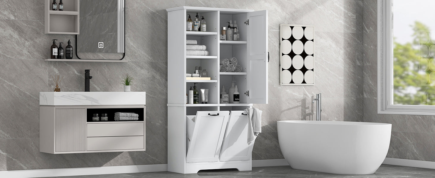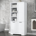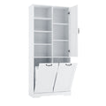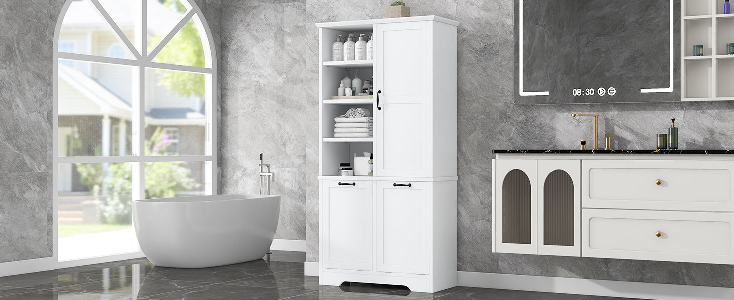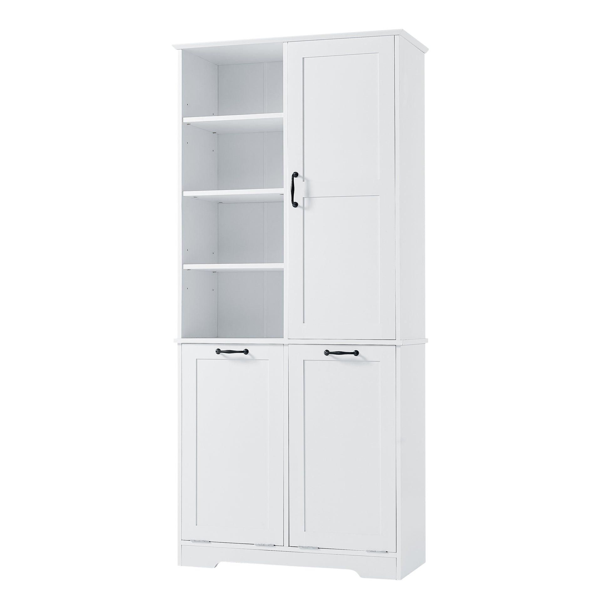 Bathroom Storage Cabinet With Doors And Drawers, Tilt Out Laundry Hamper, Multiple Storage Space, Freestanding Style, Open Shelve, Adjustable Shelf, White White Mdf