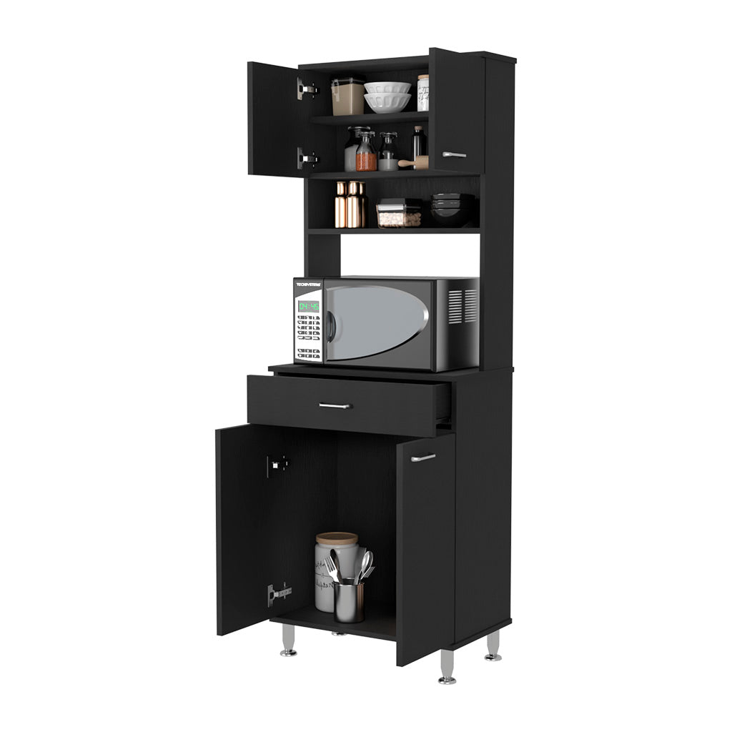 Bay Area Pantry, Two Door Cabinets, One Drawer, Four Adjustable Metal Legs Black Dining Room Modern Mdf Shelves Included Engineered Wood