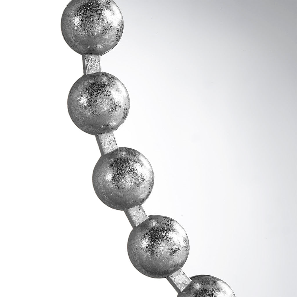 Beaded Round Wall Mirror 27"D Silver Mdf