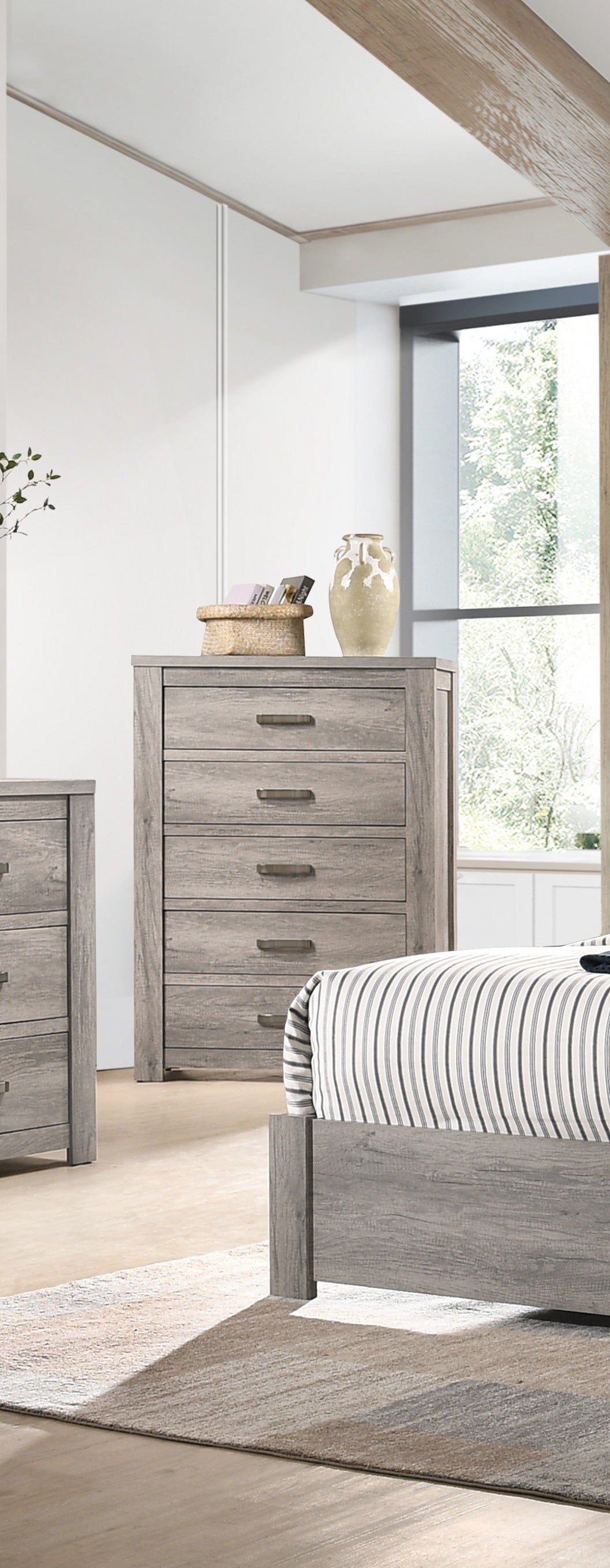 Bedroom Furniture Rustic Light Grey Simple 1Pc Chest Of Drawers 5 Drawers Storage Cabinet Solidwood Light Grey Bedroom Modern,Transitional Pine Particle Board Mdf,Solid Wood
