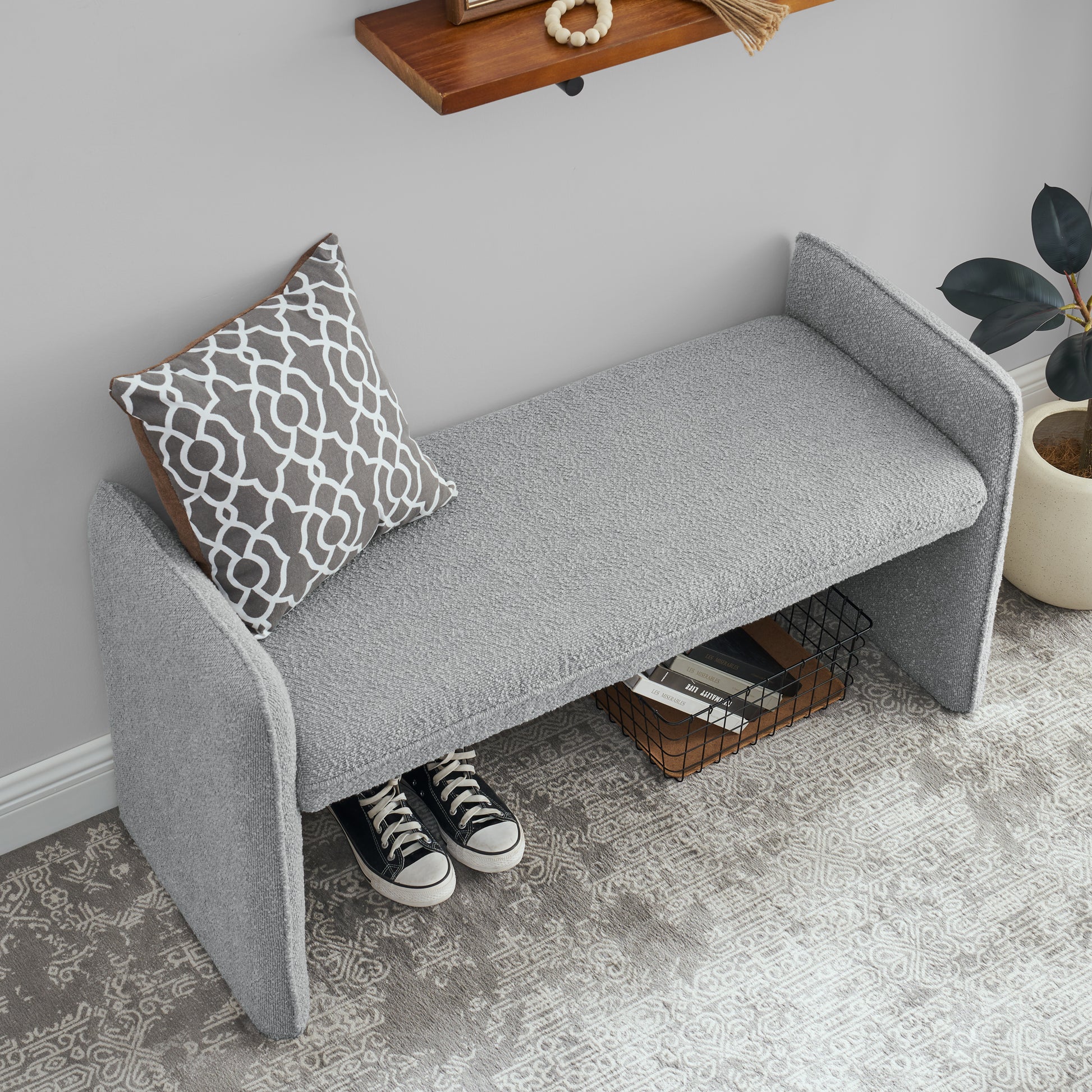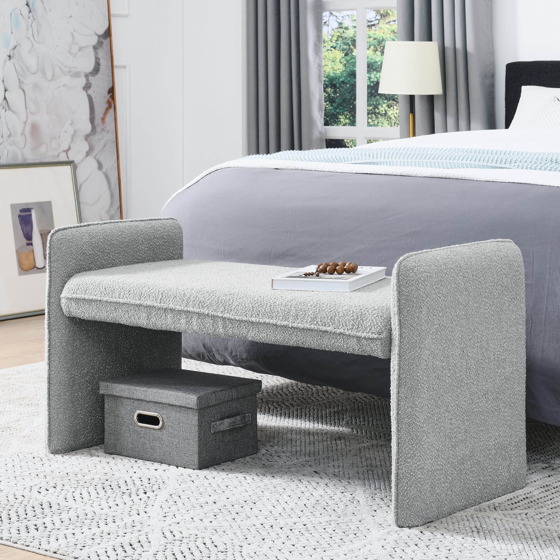 Bedroom Storage Stool, Linen Fabric Storage Stool, Large Storage Space,44.48 Inches, Can Be Used For Bed End, Living Room, Entrance Grey Grey Linen