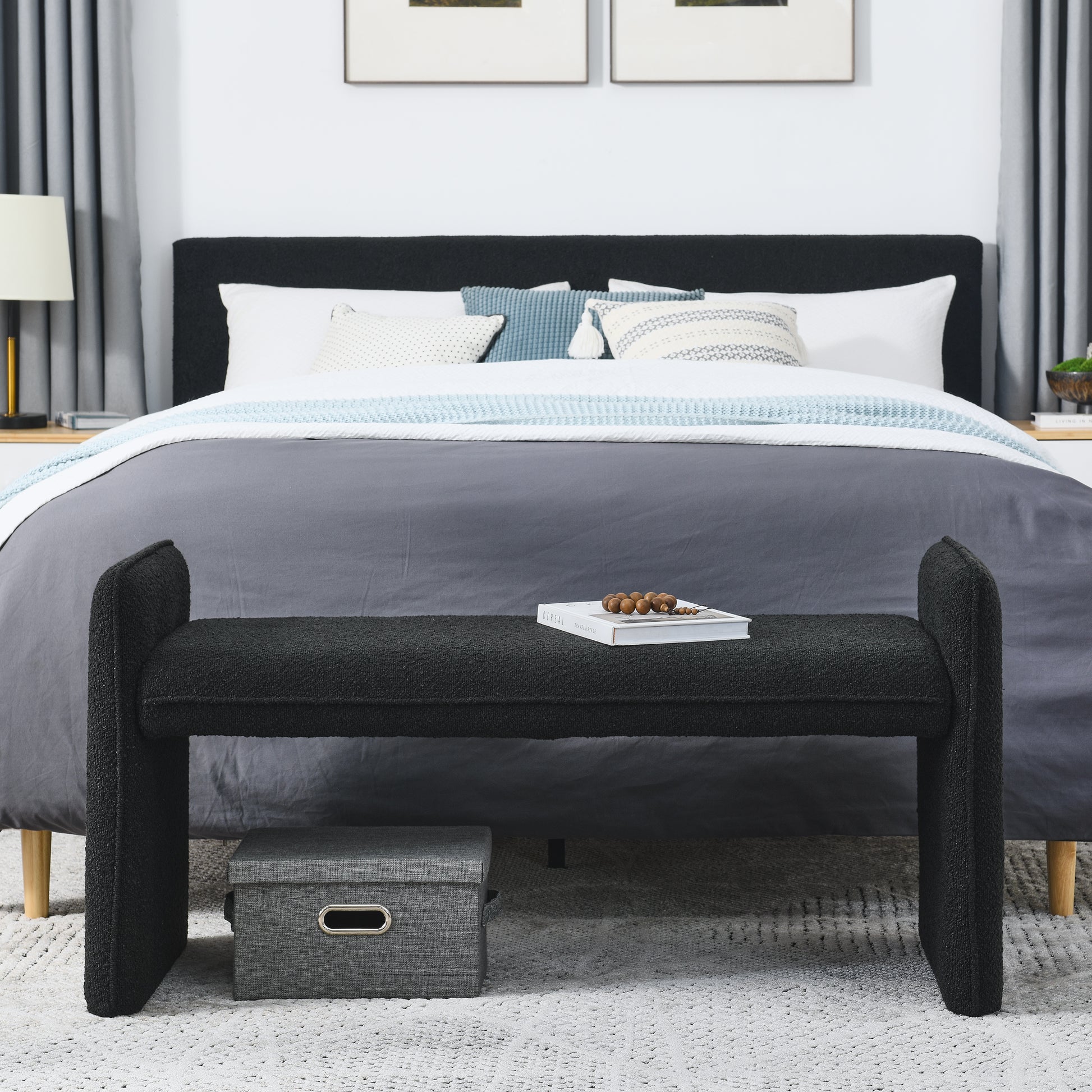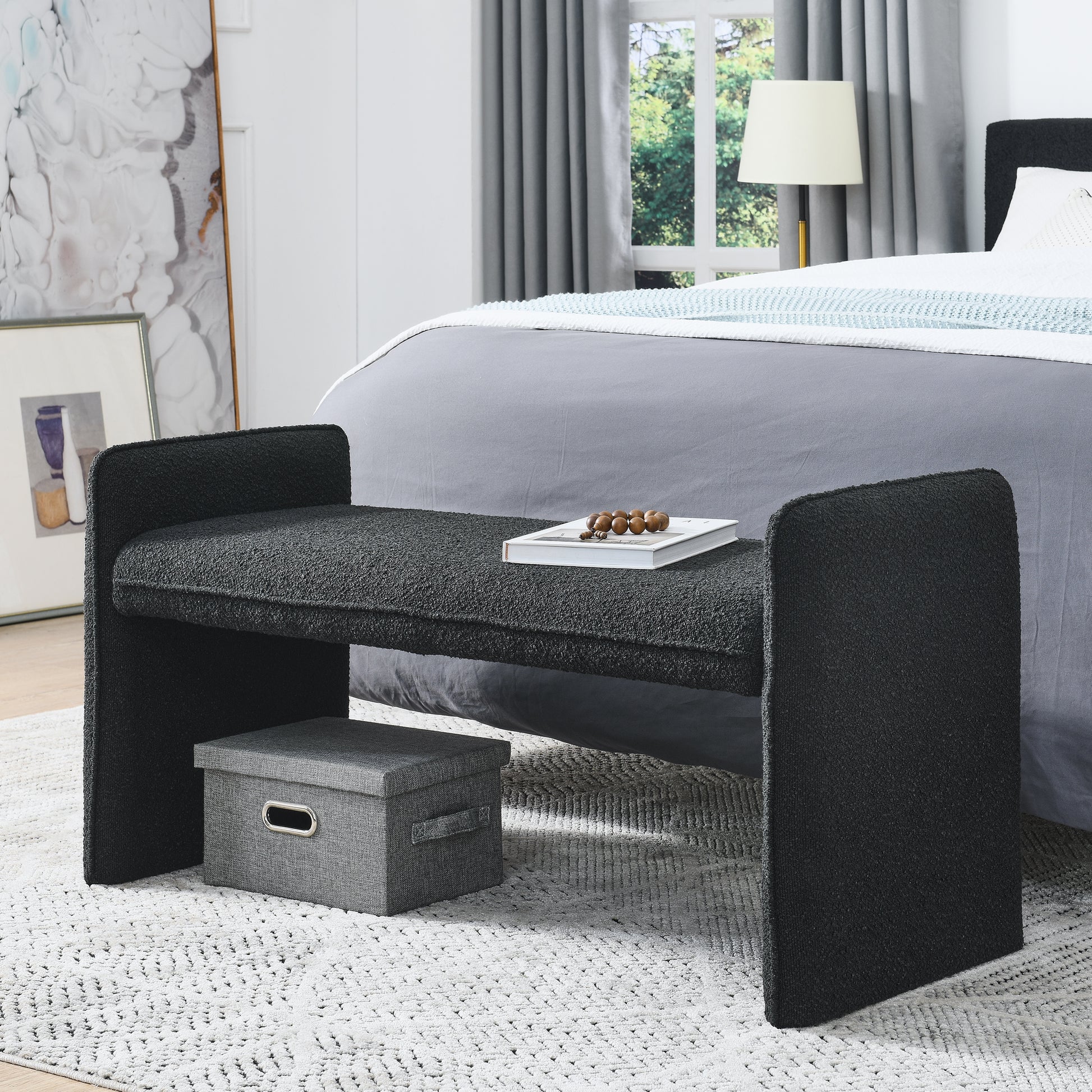 Bedroom Storage Stool, Linen Fabric Storage Stool, Large Storage Space,44.48 Inches, Can Be Used For Bed End, Living Room, Entrance, Black Black Linen