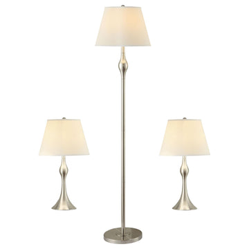 Beige And Brushed Nickel 3 Piece Lamp Set Silver Table&Floor Lamps Contemporary,Modern Living Room Metal