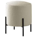 Beige And Matte Black Round Upholstered Ottoman Beige Polyester Wood Beige Solid Backless Medium Soft Contemporary,Modern Round Armless Foam Fabric
