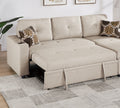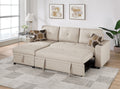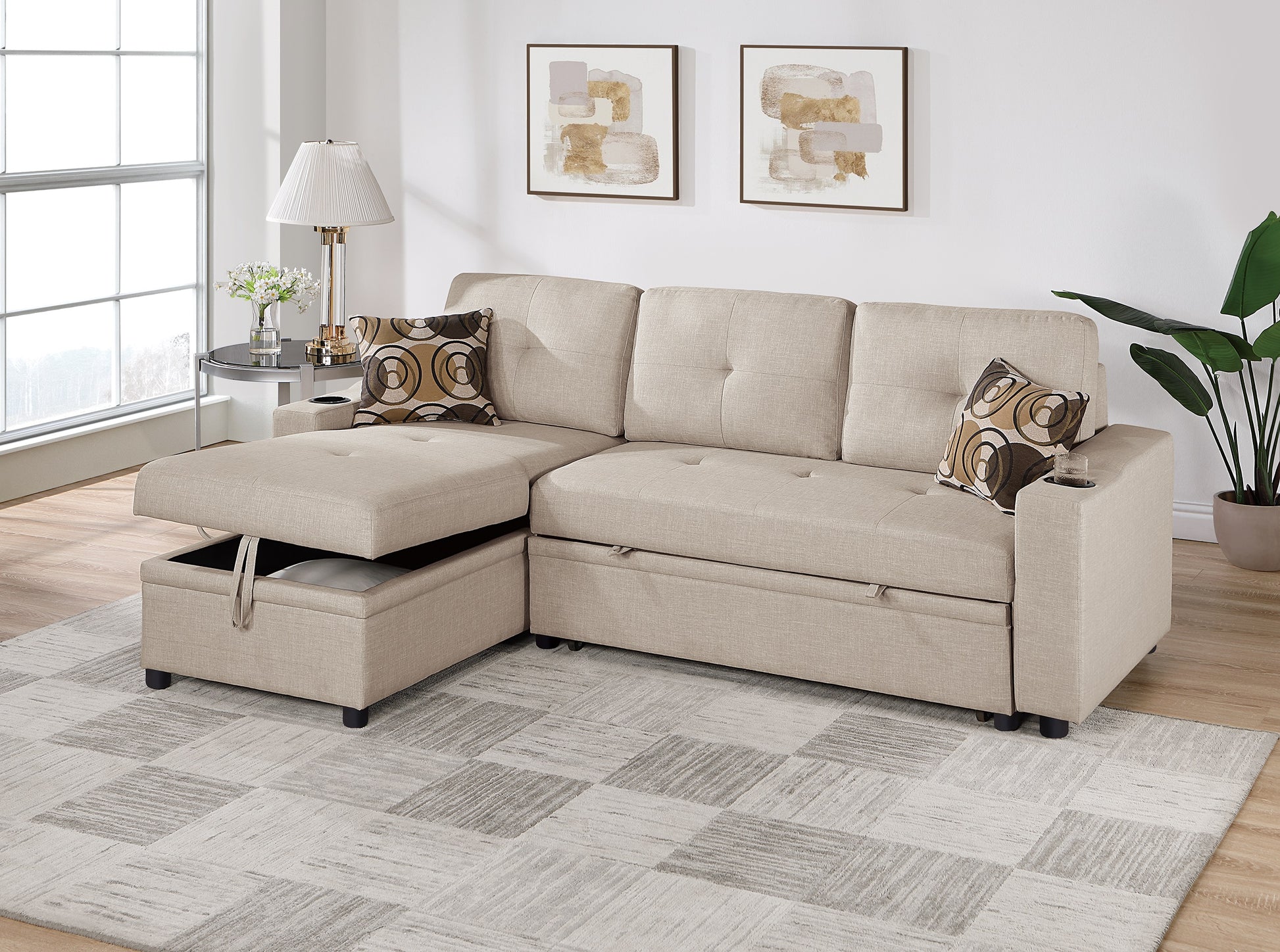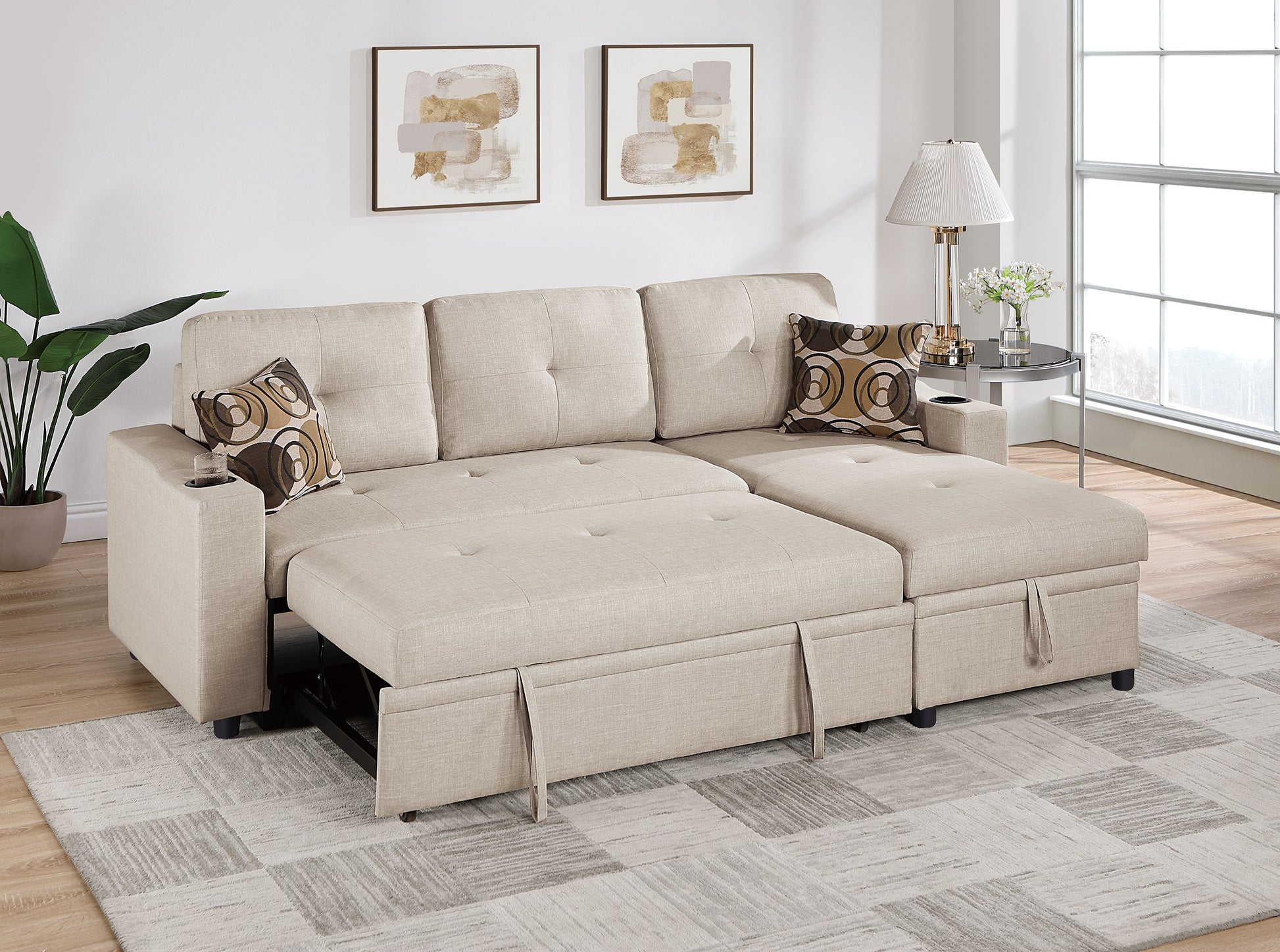 Beige Dorris Fabric Convertible Sectional Sofa Pull Out Bed Couch Storage Chaise Cup Holders 2Pc Sectional Living Room Beige Primary Living Space Tufted Back Contemporary,Modern L Shaped Square Arms Plywood 4 Seat