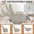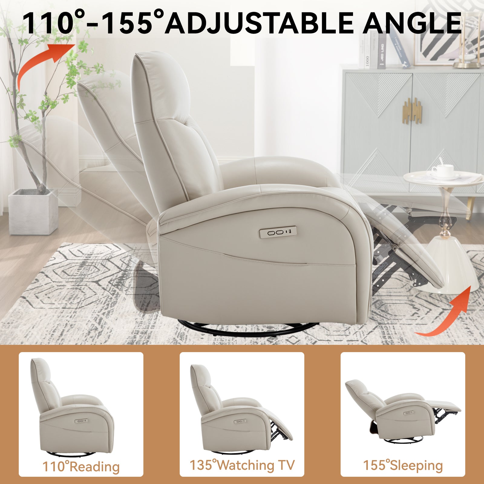 Beige Grey Leatheraire Swivel And Rocker Power Recliner Chair With Lumbar Support, Max Swivel Degree 270 , Heavy Duty Motion Mechanism With Usb And Type C Ports Beige Grey Faux Leather Power Push Button Metal Primary Living Space Medium Firm Pillow Back