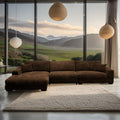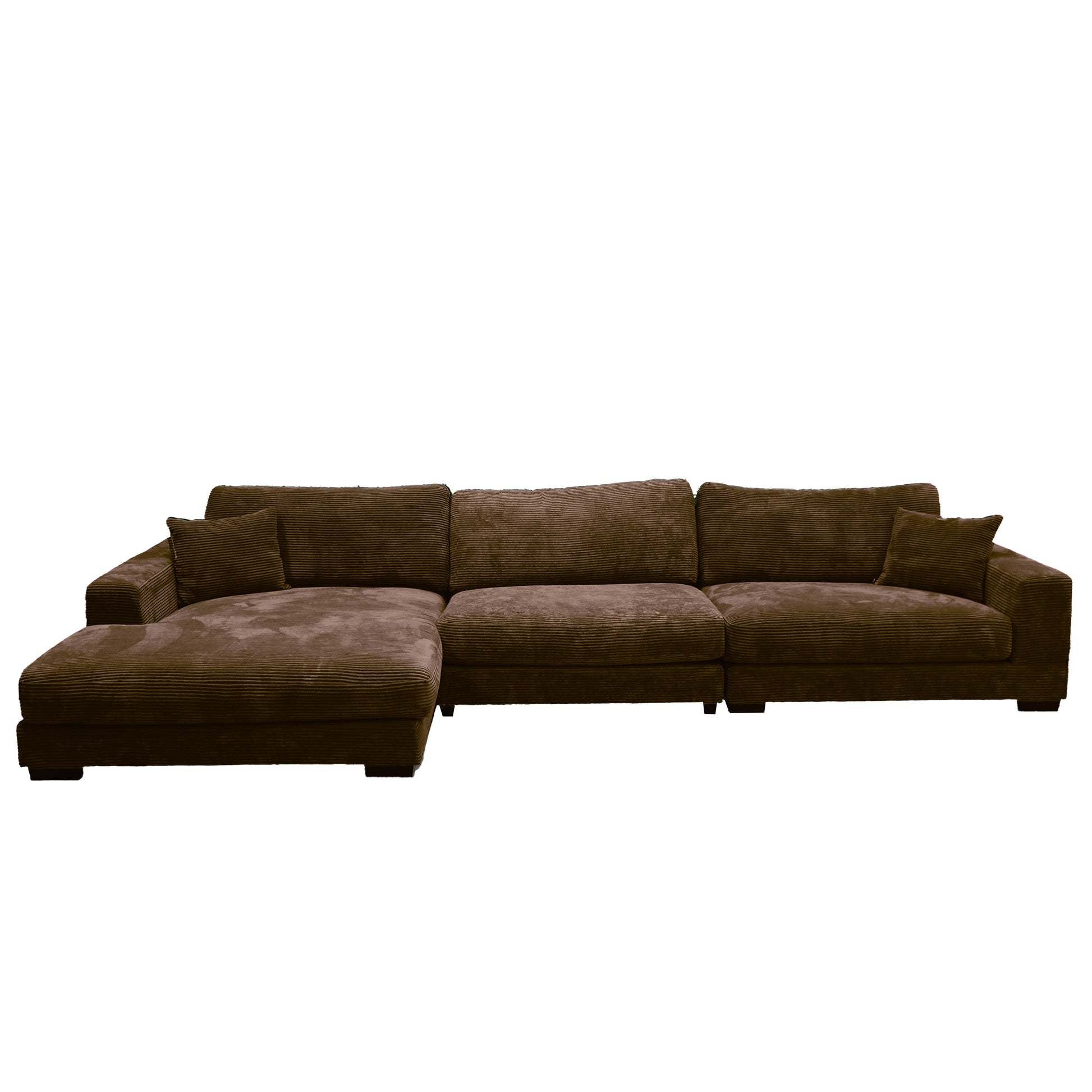 Bella Brown Corduroy Left Facing 3 Piece Sectional Brown Wood Corduroy 4 Seat