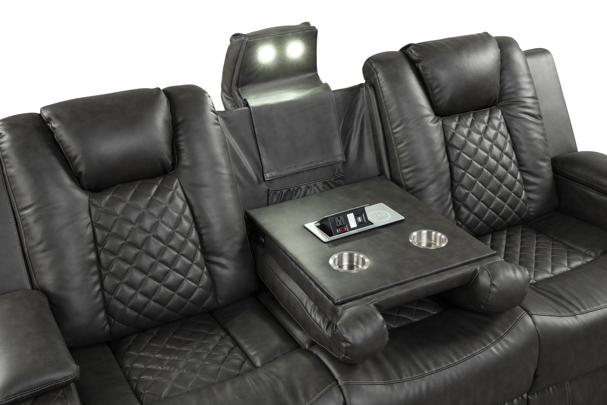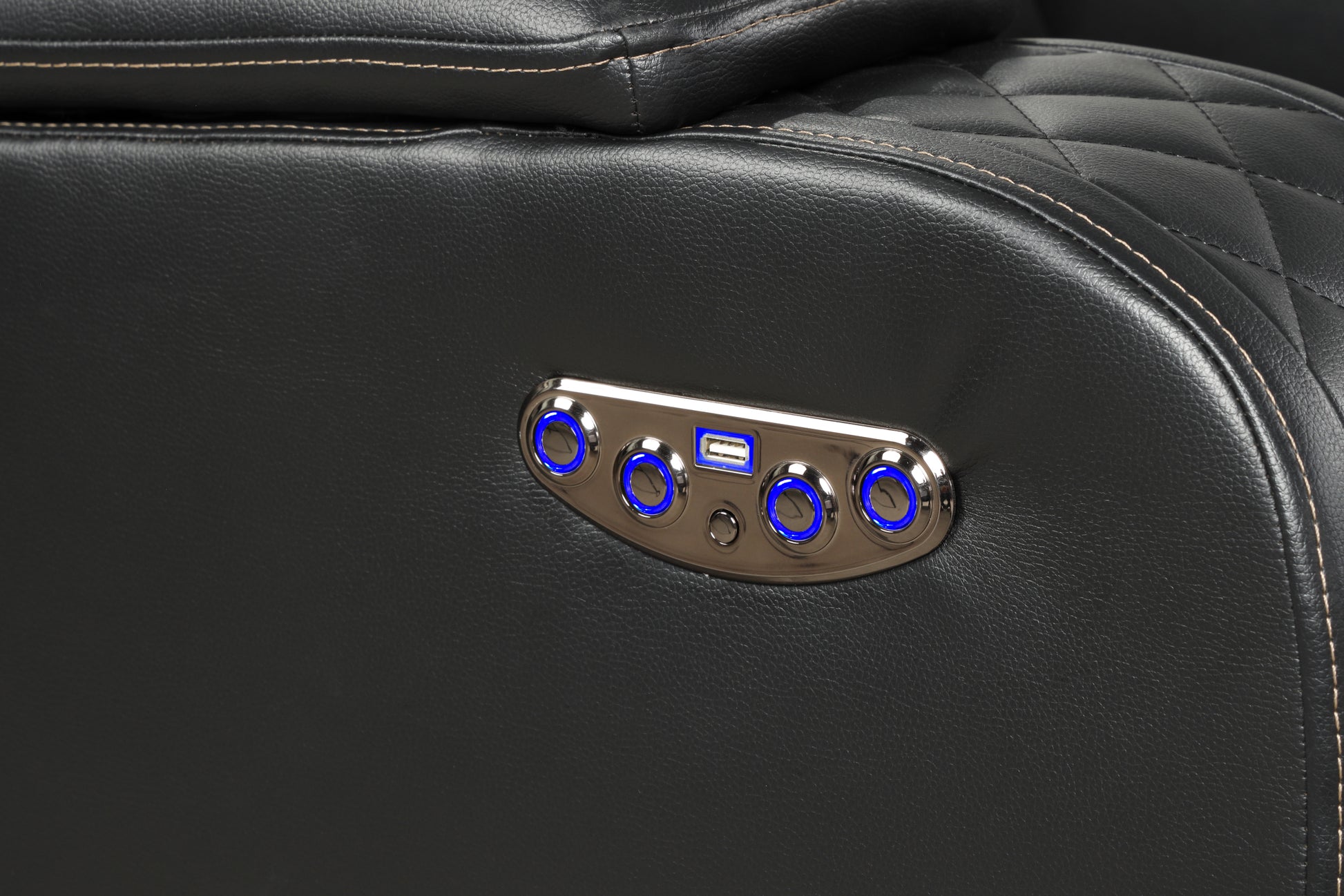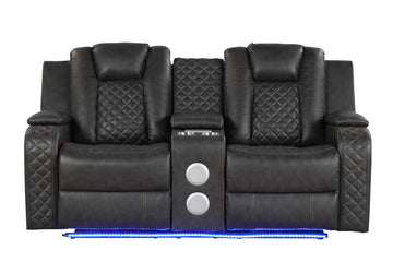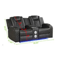 Benz Led & Power Reclining Loveseat Made With Faux Leather In Black Black Faux Leather Metal Primary Living Space Medium Soft Cushion Back Contemporary,Modern Solid Wood Mdf Faux Leather