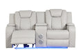 Benz Led & Power Reclining Loveseat Made With Faux Leather In Ice Beige Faux Leather Metal Primary Living Space Medium Soft Cushion Back Heavy Duty Contemporary,Modern Solid Wood Mdf Faux Leather