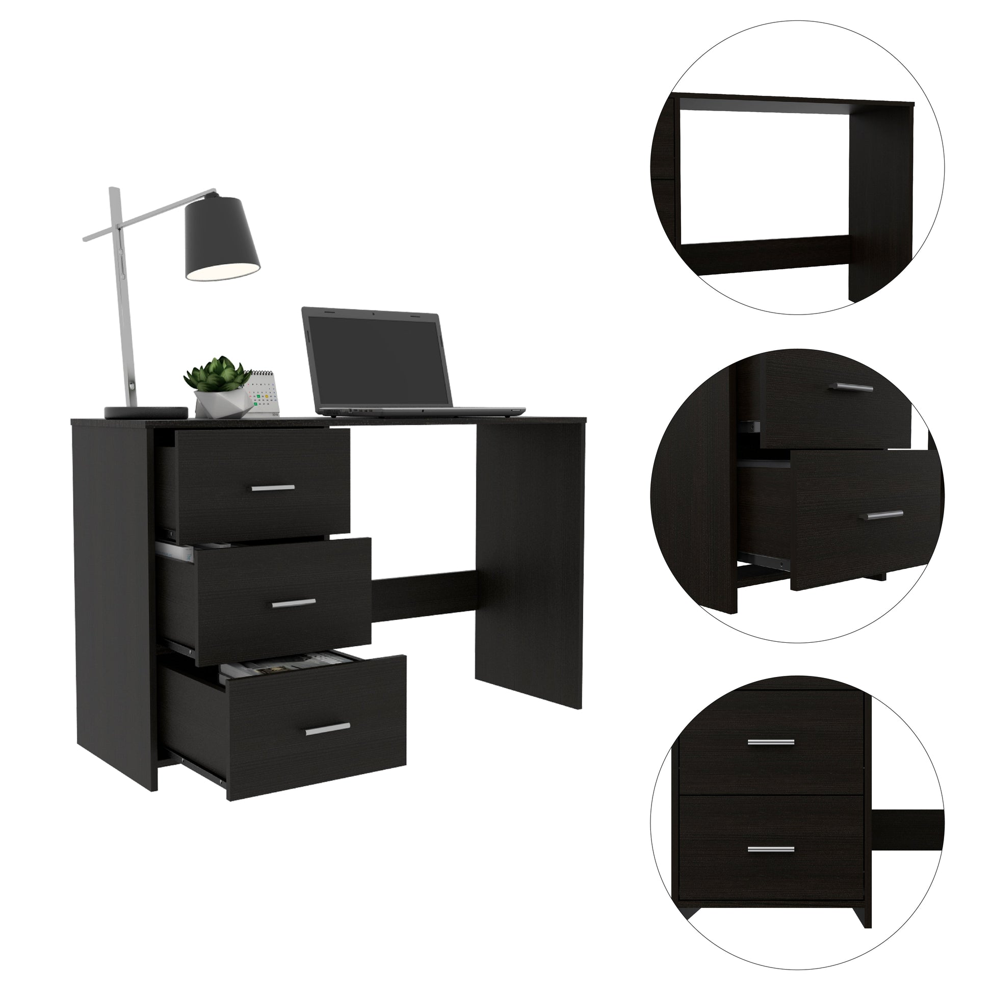 Berlin Three Drawers Desk Black Mdf Engineered Wood