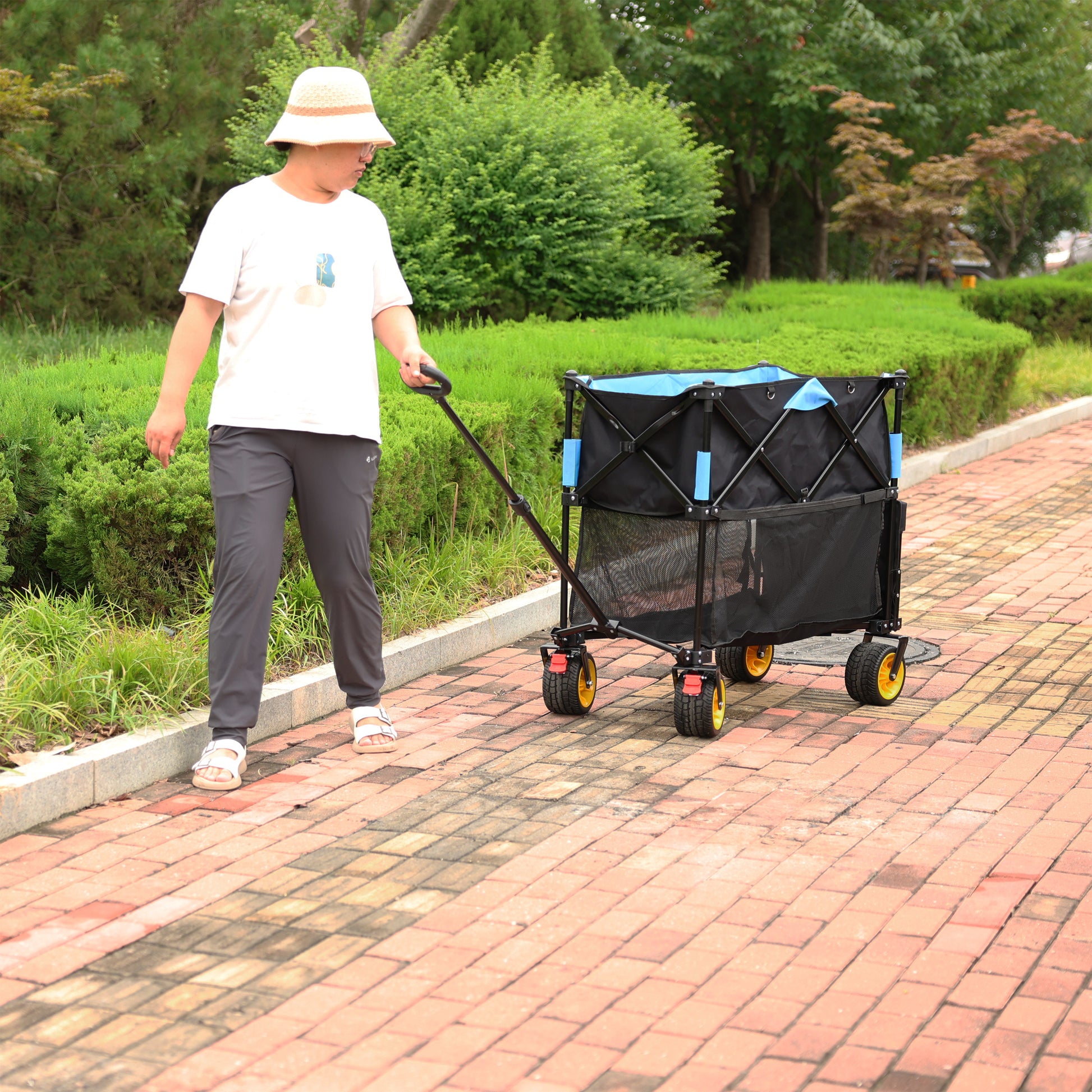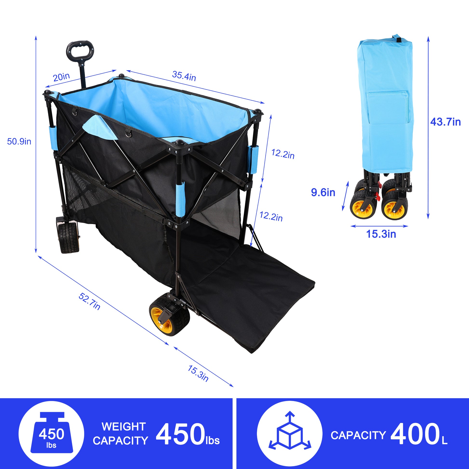 Big Large Capacity Folding Cart Extra Long Extender Wagon Cart Folding Wagon Garden Shopping Beach Cart Black Blue Black Garden & Outdoor Iron,Oxford Fabric