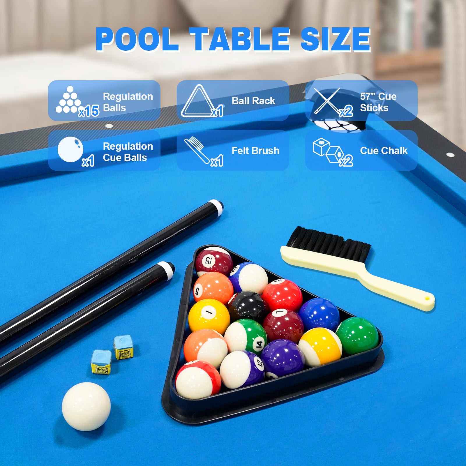 Billiards Table,Portable Pool Table, Includes Full Set Of Balls, 2 Cue Sticks, Chalk, And Felt Brush,Folding Pool Table,Simple Assembly Needed,Family Movement Indoor Fitness Black Blue Office Gym Mdf