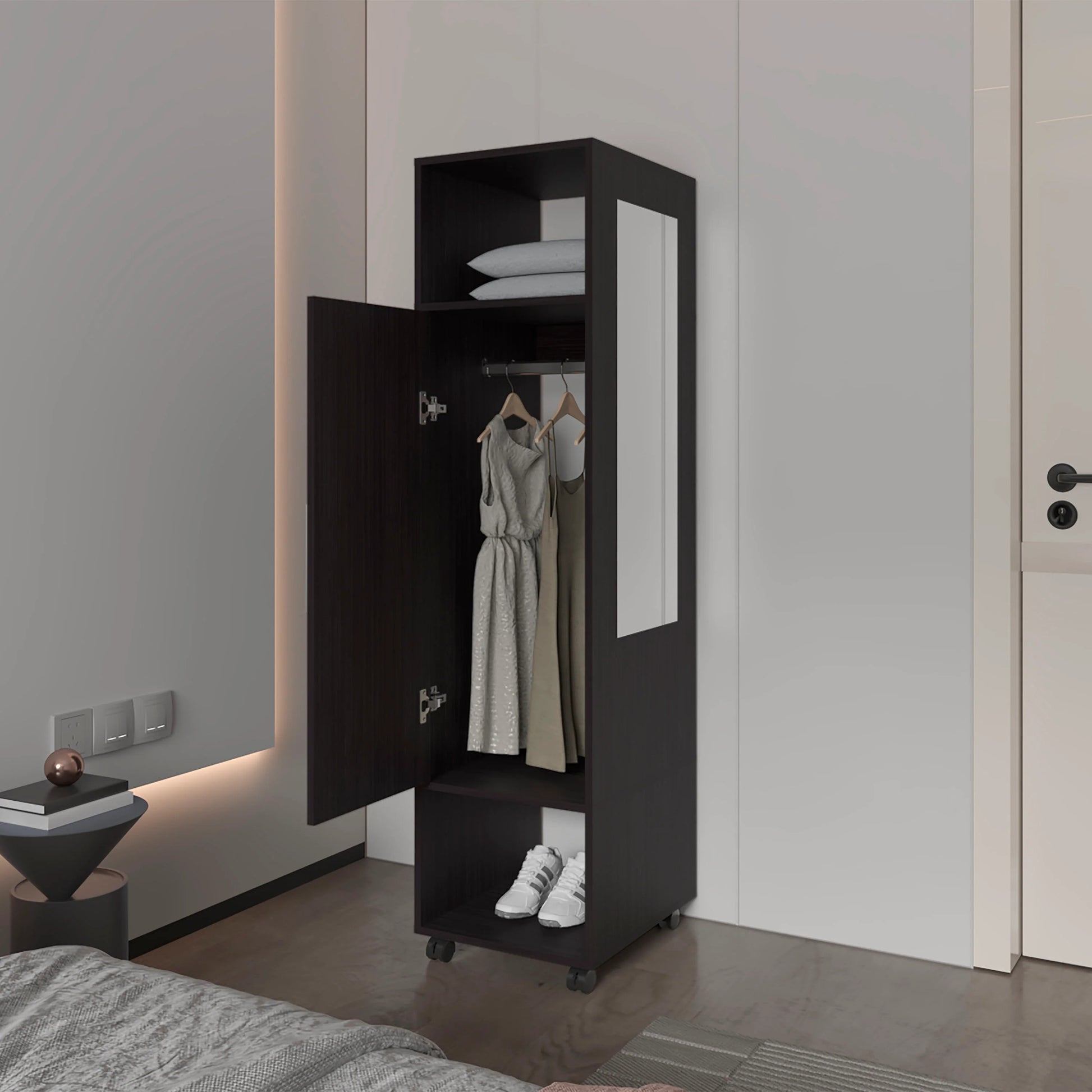 Black 1 Door Wardrobe With Mirror And Open Storage Black Particle Board Melamine