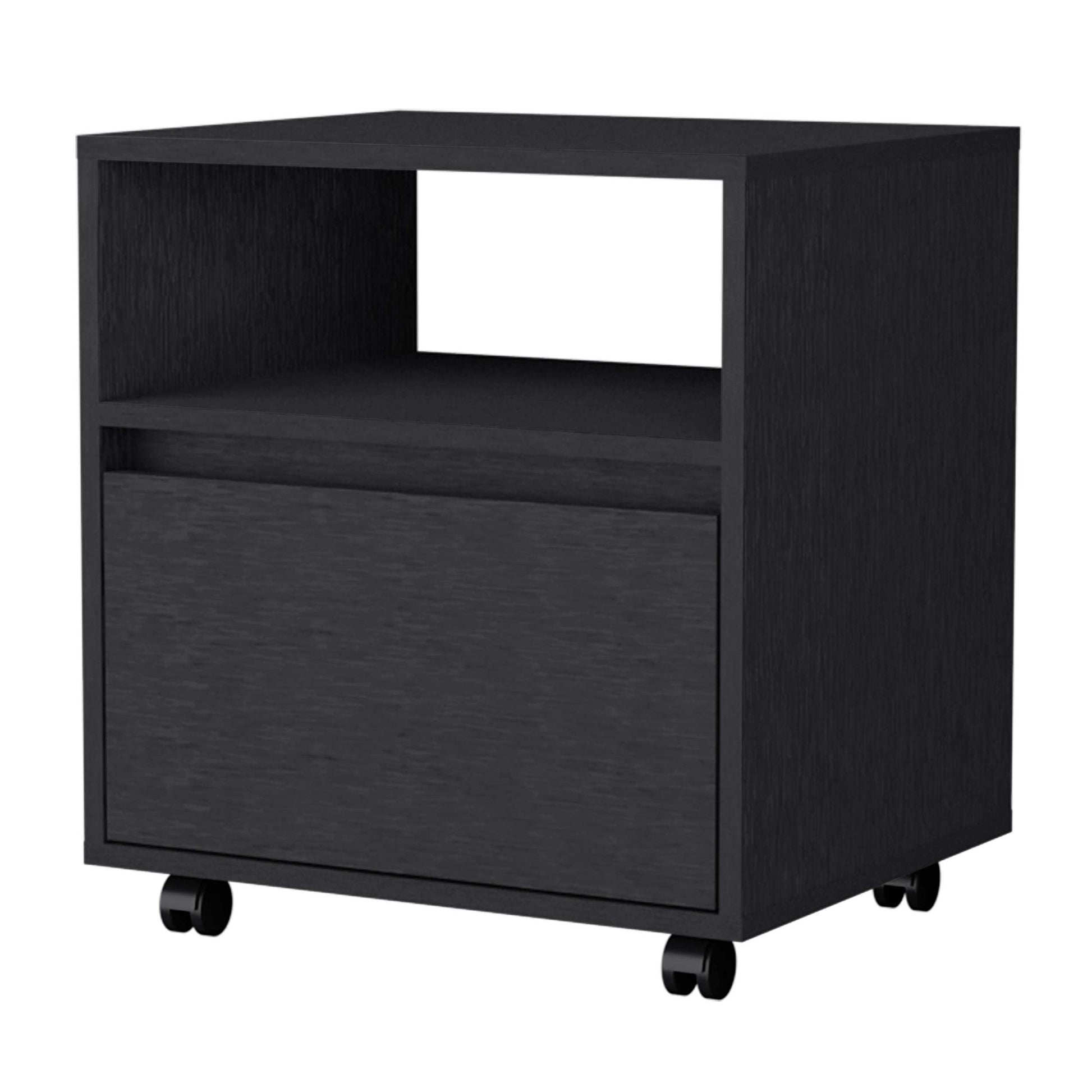 Black 1 Drawer Nightstand Black 1 Drawer Bedroom Open Storage Wheels Black Wood