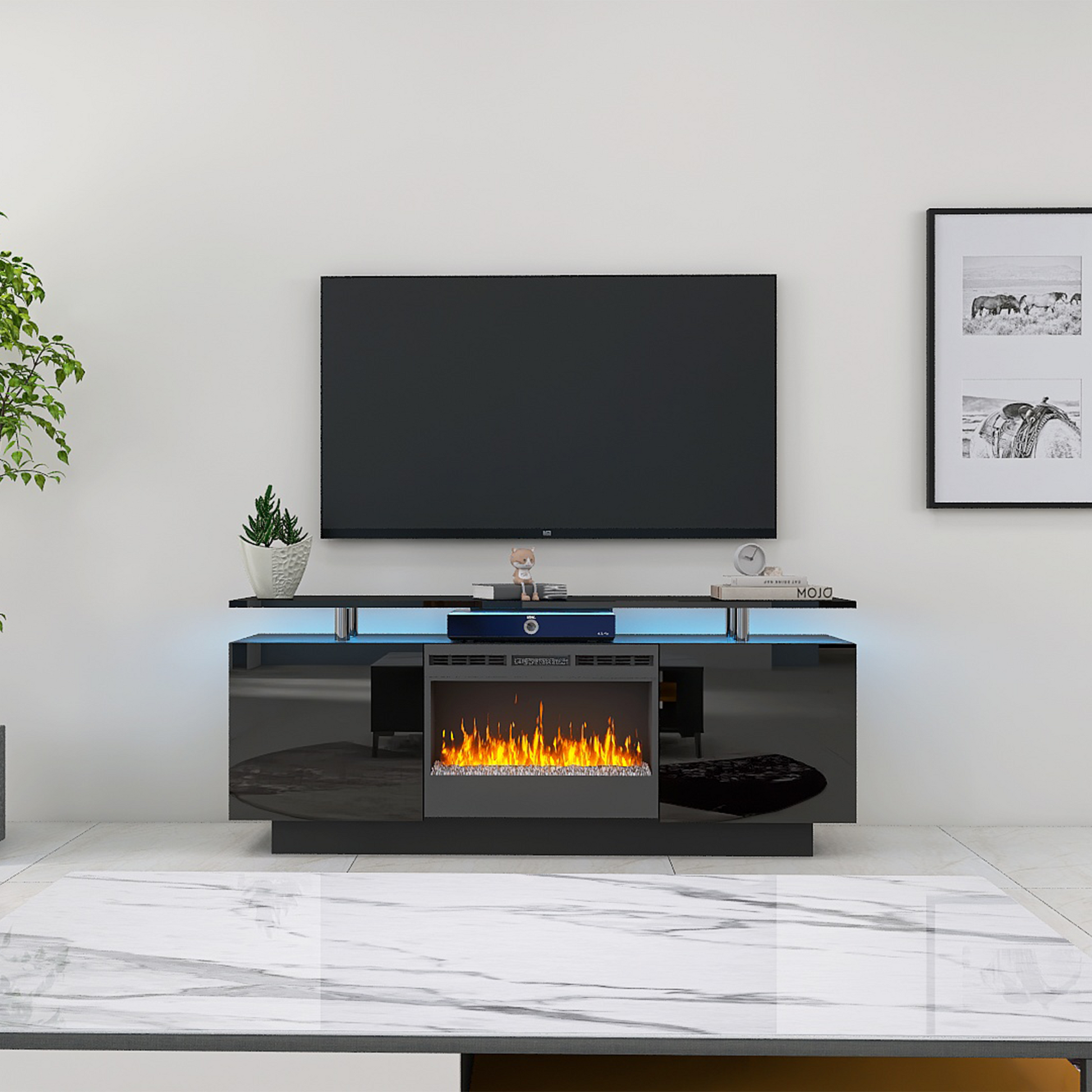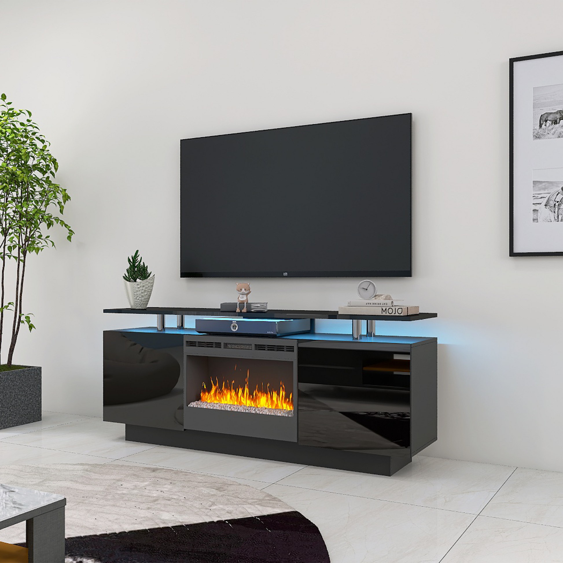 Black 160Cm Large Tv Cabinet With Fireplace Can Heating Change Color 9 Models 8 Levels Have Led Light Black Primary Living Space 60 69 Inches 50 59 Inches 50 Inches Mdf