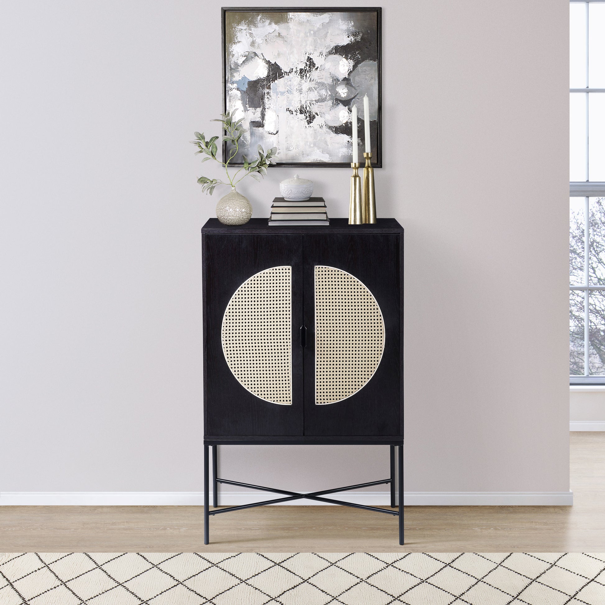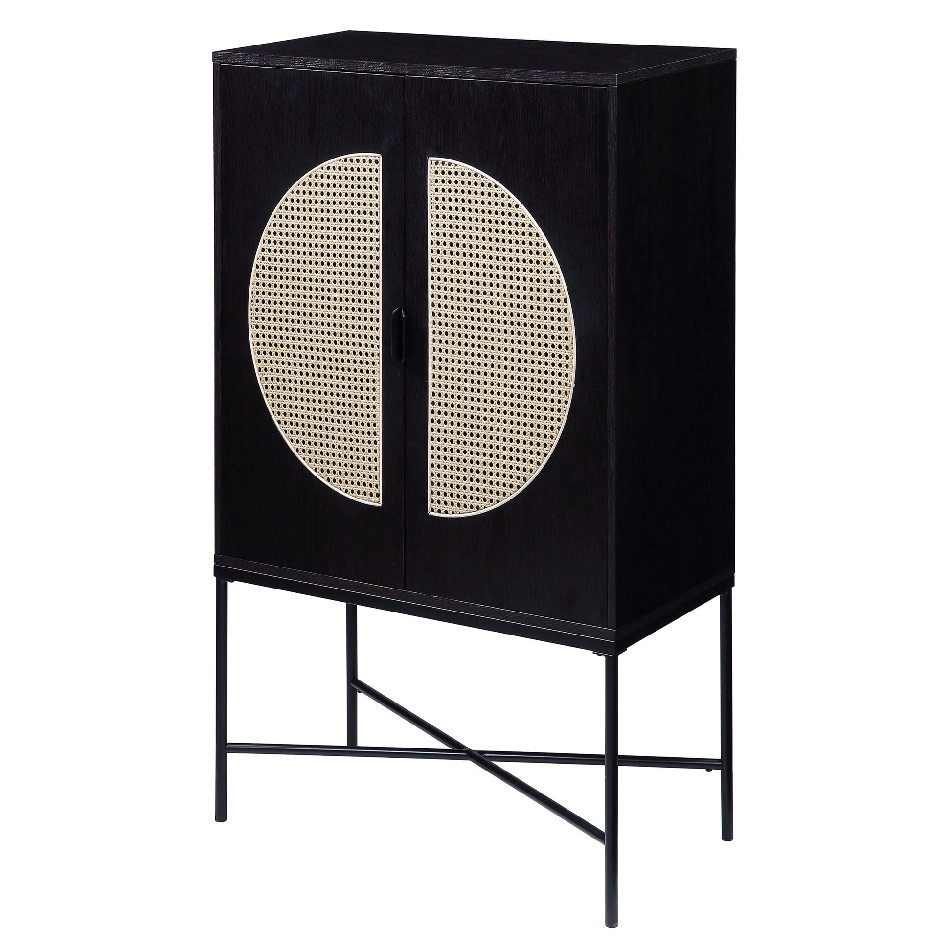 Black 2 Door Wine Cabinet With Rattan Insert Black Kitchen Modern Wood Metal
