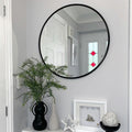 Black 20 Inch Metal Round Bathroom Mirror Black Classic Mdf Glass Aluminium Alloy