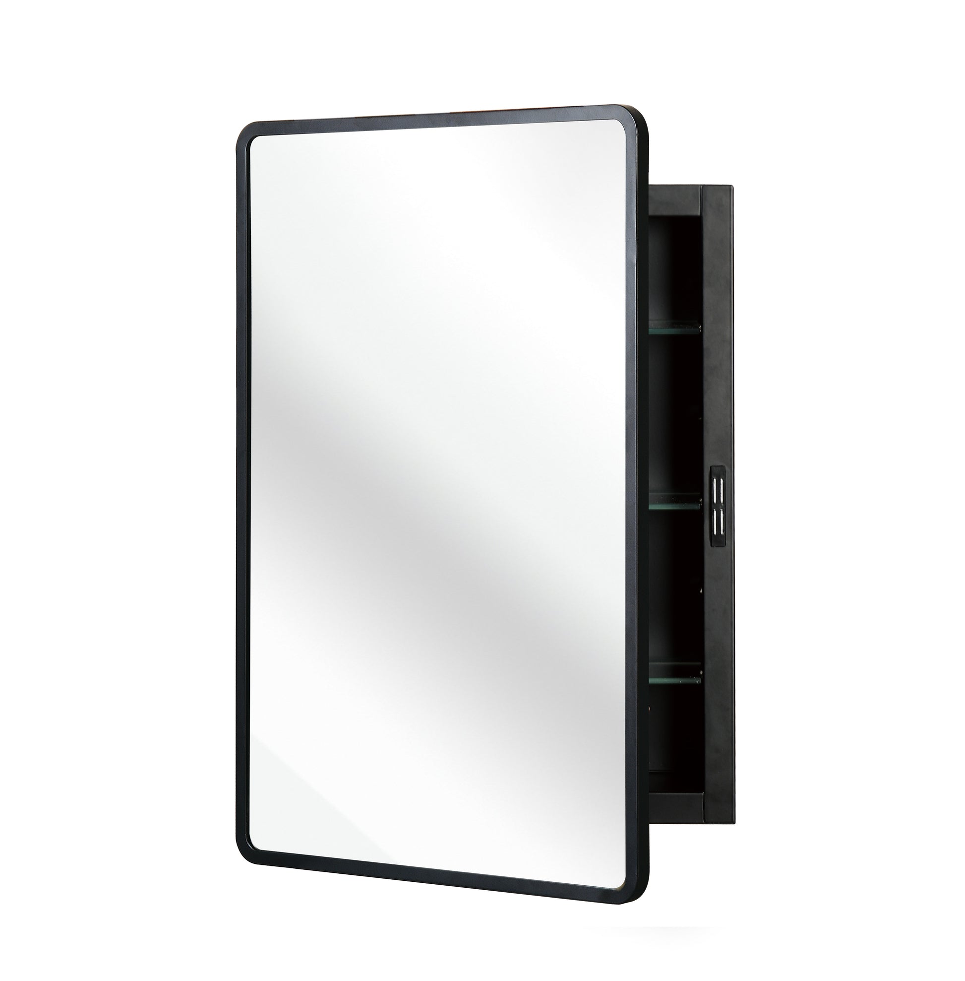 Black 20X30 Inch Metal Framed Wall Mount Or Recessed Mirror Cabinet Adjustable Shelves Bathroom Powder Coated Black 1 3 18 To 23 In 24 To 31 In Wall Mounted Classic Less Than 5 Inches Glass Iron