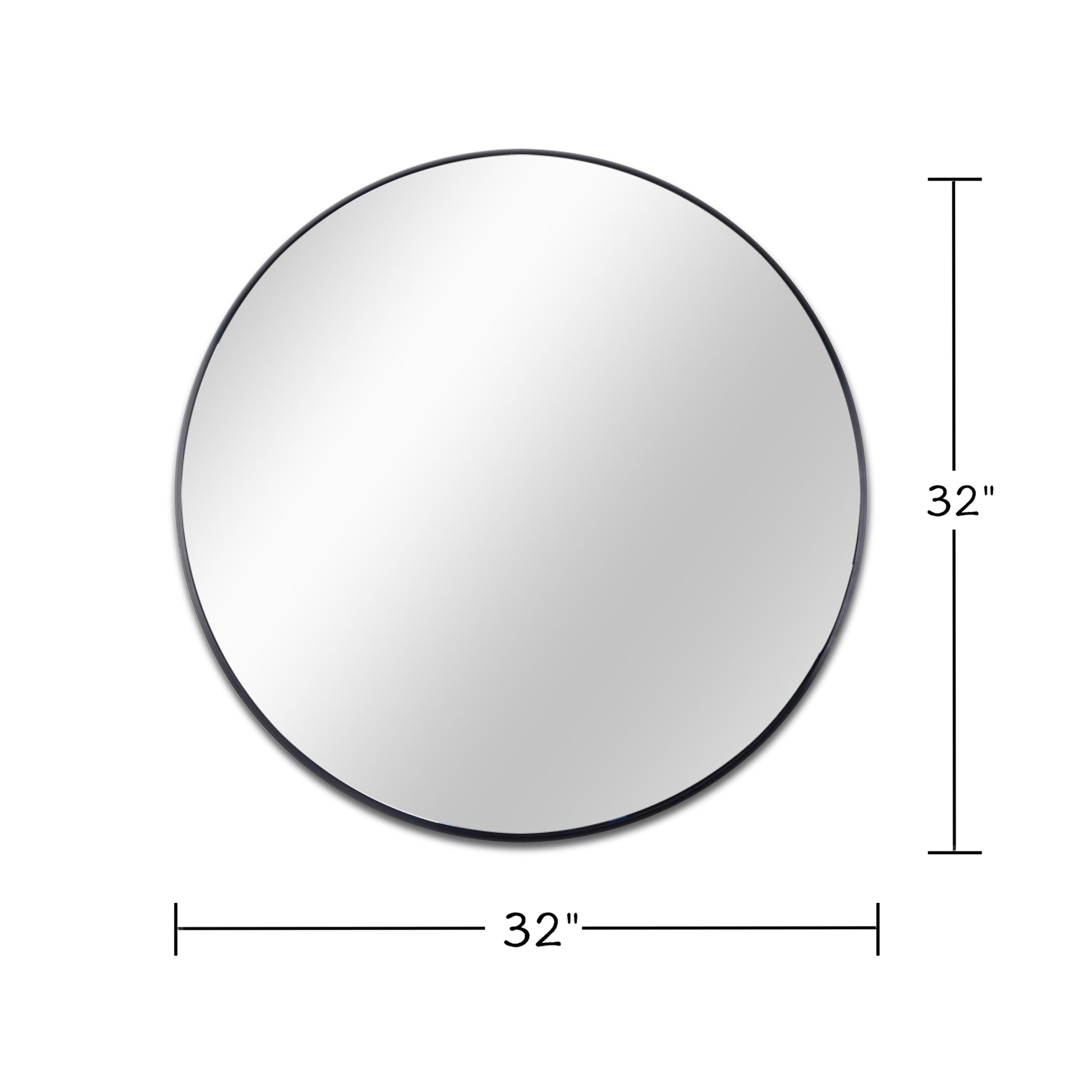 Black 32 Inch Metal Round Bathroom Mirror Black Classic Mdf Glass Aluminium Alloy