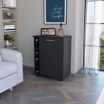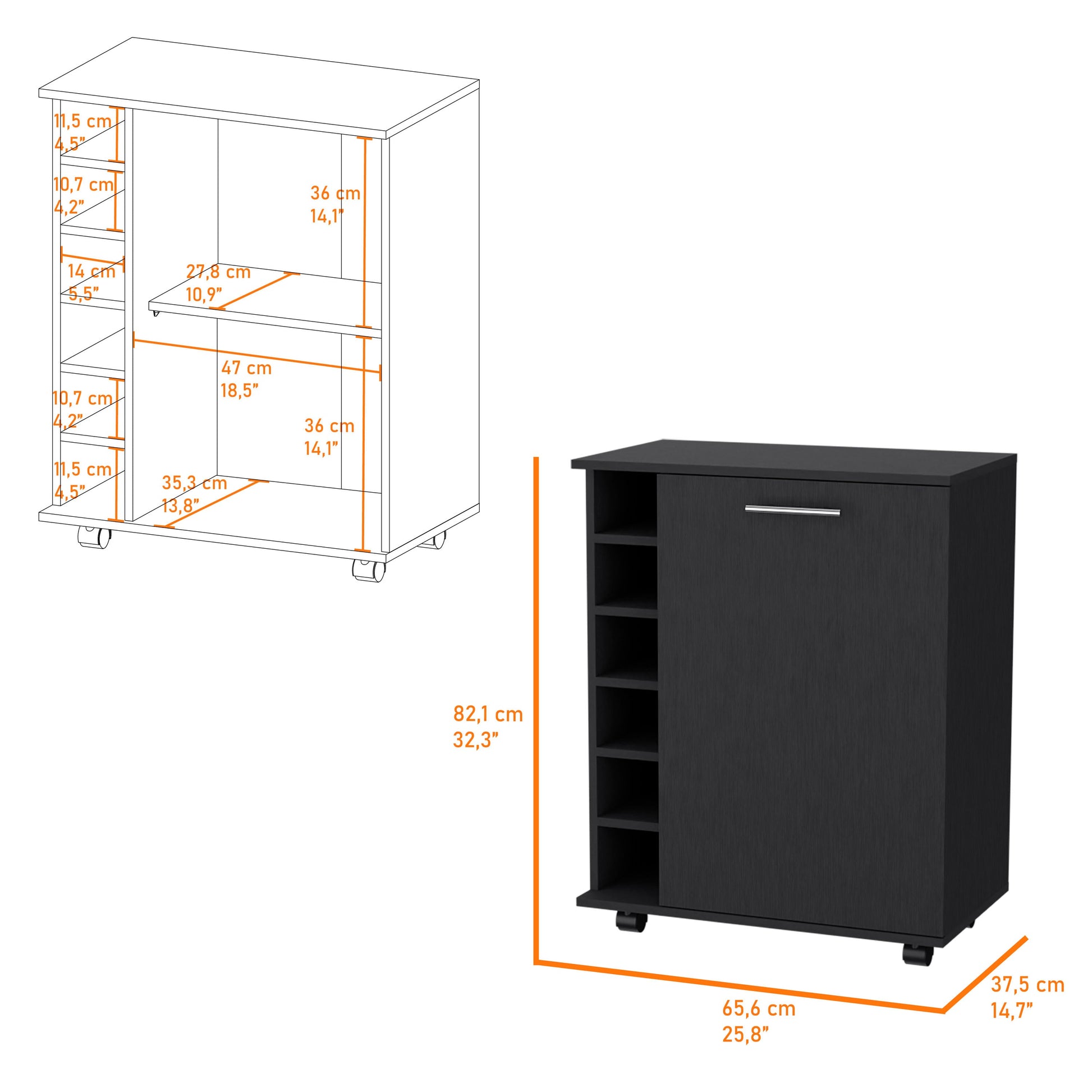 Black 6 Bottle Rack Bar Cart Black Primary Living Space Rectangular Kitchen Carts Wood Small Less Than 40In