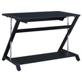 Black And Chrome Computer Desk With Keyboard Tray Black Keyboard Tray Computer Desk Office Contemporary,Modern Rectangular Shelves Desk Metal